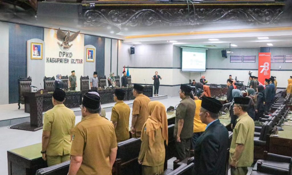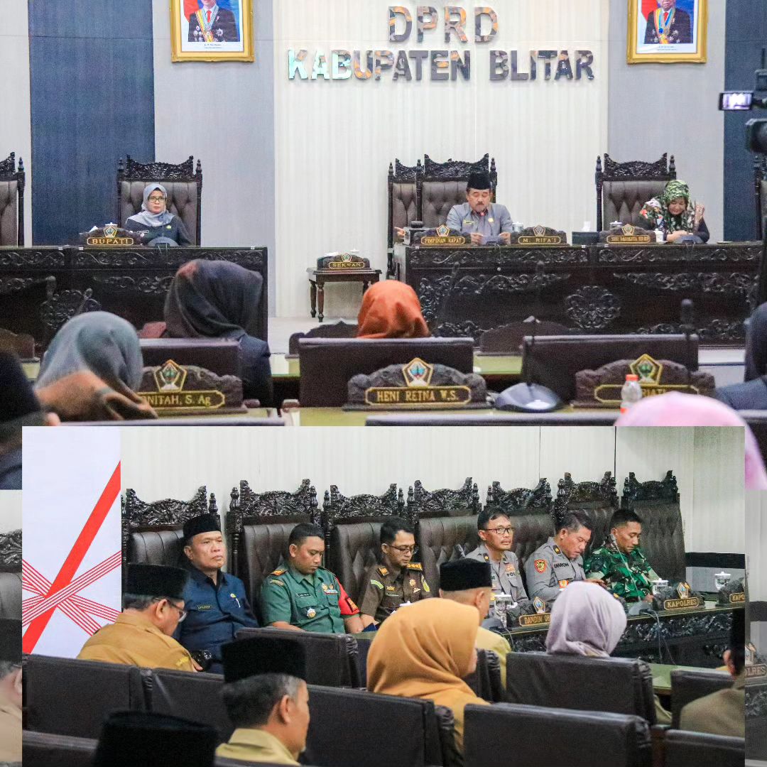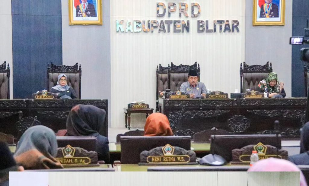 Rapat Paripurna tersebut dipimpin oleh Wakil Ketua DPRD Kabupaten Muhammad Rifa’i. Turut hadir pula dalam rapat tersebut, Sekretaris Daerah (Sekda) Kabupaten Blitar Izul Marom, Asisten, Staf Ahli, Kepala OPD dan sejumlah anggota DPRD Kabupaten Blitar.