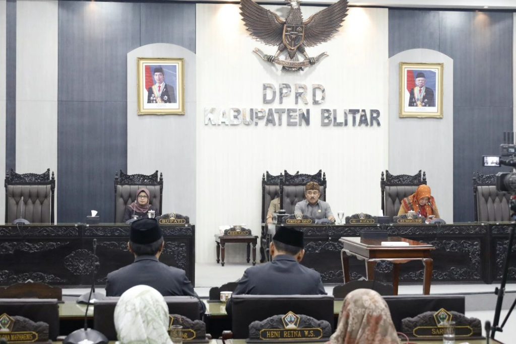 Mak Rini sapaan akrab Bupati Blitar menyampaikan Rapat Paripurna pada hari ini memiliki makna strategis dan menentukan arah jalannya roda pemerintahan, pelaksanaan pembangunan, dan pembinaan masyarakat di Kabupaten Blitar. Disamping itu sekaligus merupakan pelaksanaan mekanisme siklus pengelolaan Keuangan Daerah Tahun 2023 sebagaimana diamanatkan oleh Peraturan perundang-undangan yang berlaku.