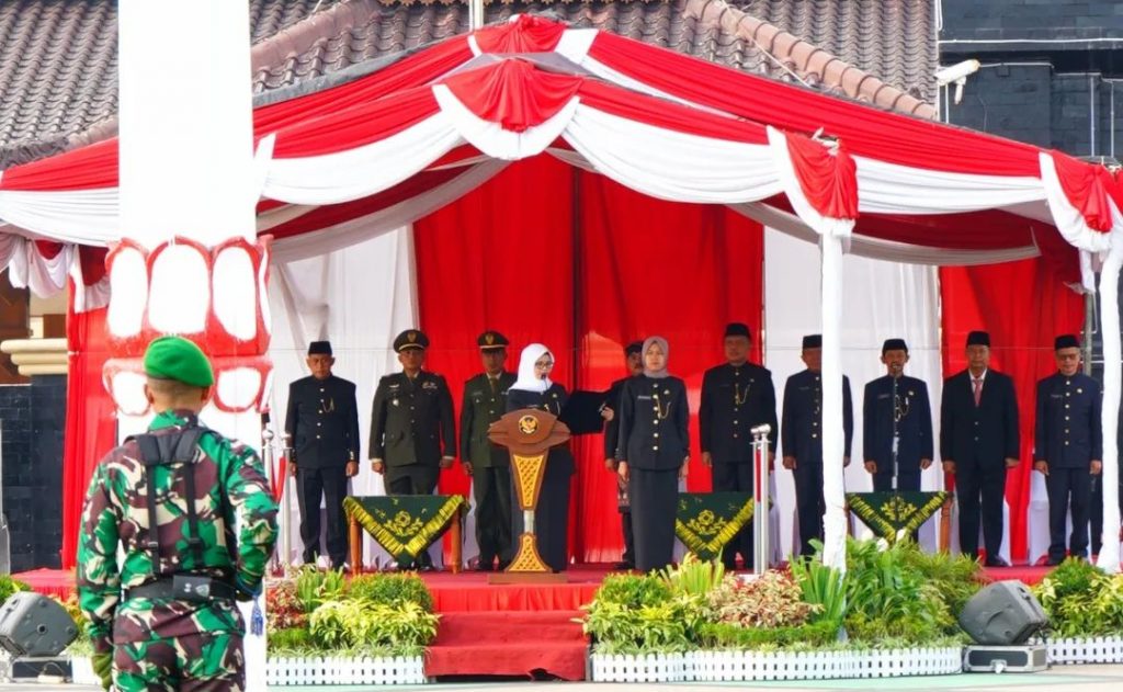 Bupati Blitar Hj. Rini Syarifah menjadi Inspektur Upacara dalam Peringatan Hari Kesaktian Pancasila, 1 Oktober 2023 di Alun-alun Kanigoro.