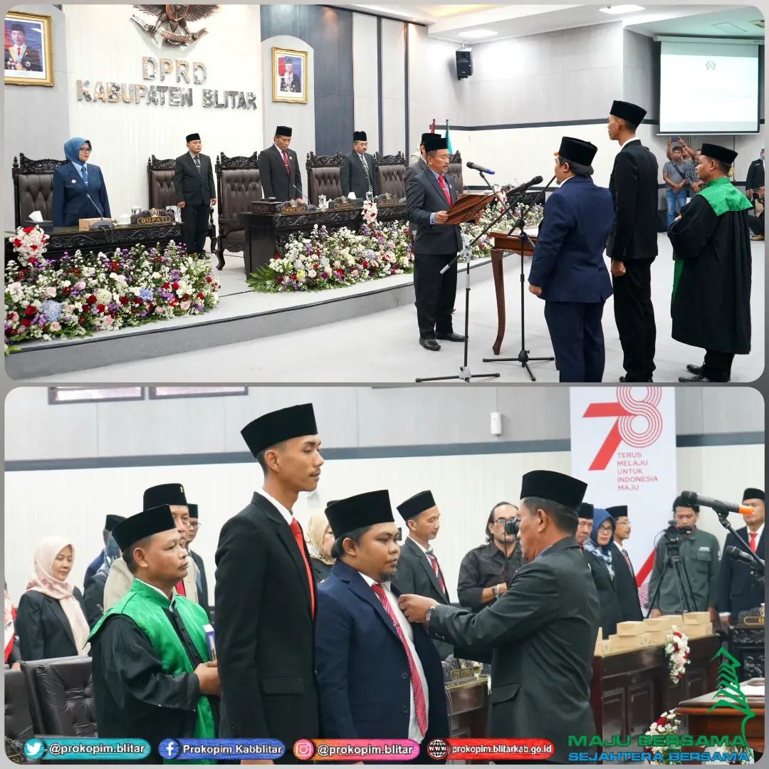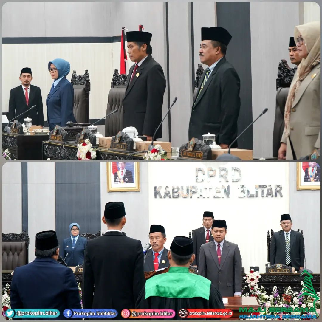 Agenda Paripurna hari ini adalah Pengambilan Sumpah Janji Pengganti Antar Waktu (PAW) anggota DPRD Kabupaten Blitar sisa masa jabatan Tahun 2019-2024, yaitu Hendik Budi Yuantoro, S.Sos, M.IP dan Bima Bagus Susetyo, S.H.