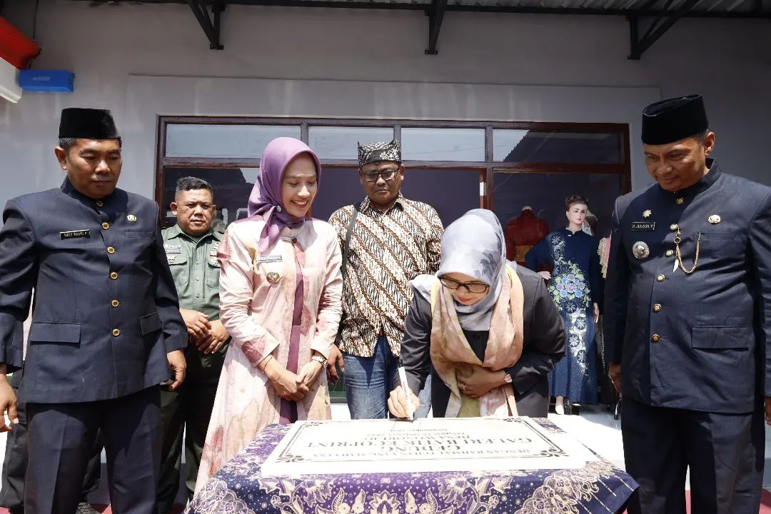 Bupati Blitar Hj. Rini Syarifah didampingi Kepala Dinas PMD Kabupaten Blitar meresmikan Gedung Galeri Batik Ecoprint Desa Wonorejo Kecamatan Talun pada Senin, 16 Oktober 2023. Turut hadir pada acara tersebut Muspika Talun, Kepala Desa se-Kecamatan Talun dan pelaku UMKM.