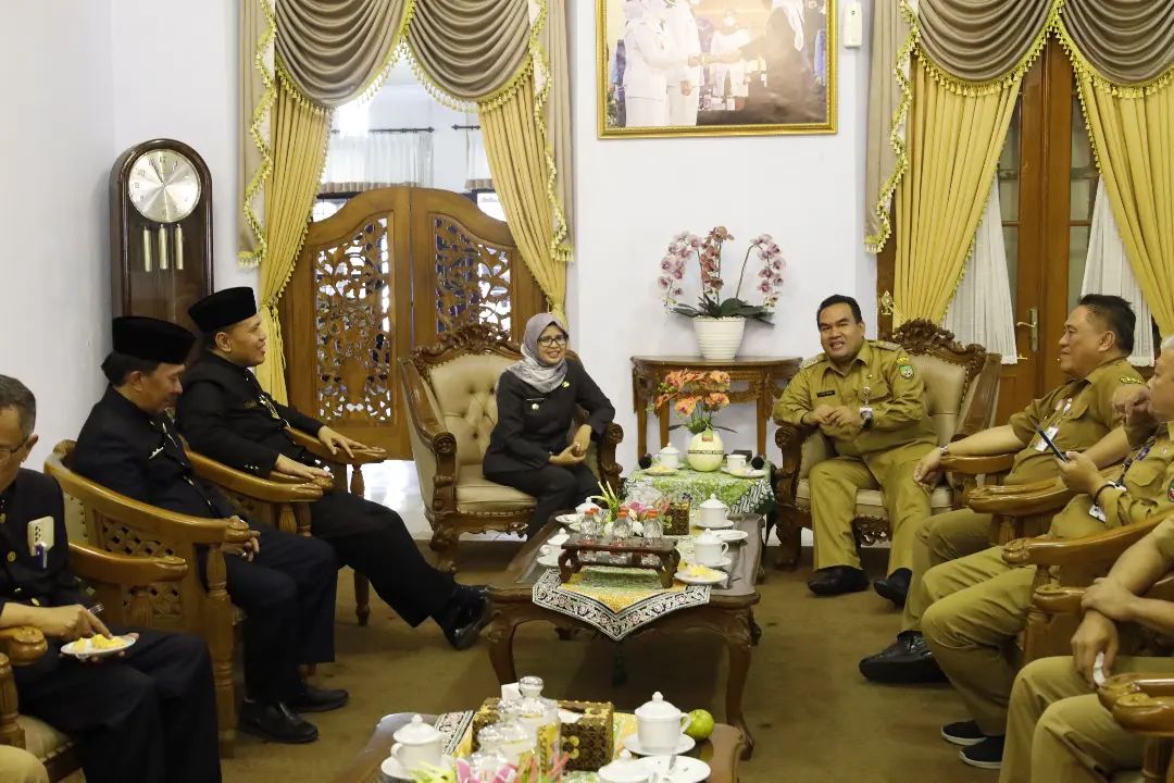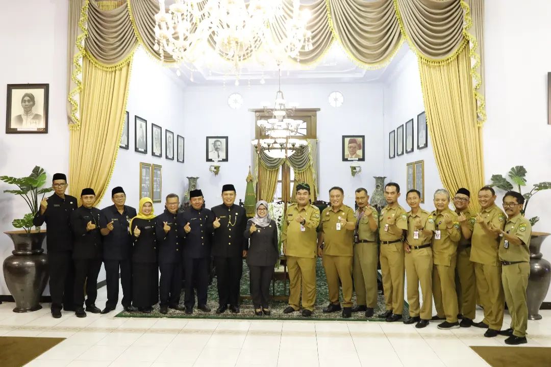 Bupati Blitar Hj. Rini Syarifah menerima kunjungan kerja Bupati Blora H. Arief Rohman bersama jajarannya di Pendopo Ronggo Hadinegoro pada Senin, 16 Oktober 2023.