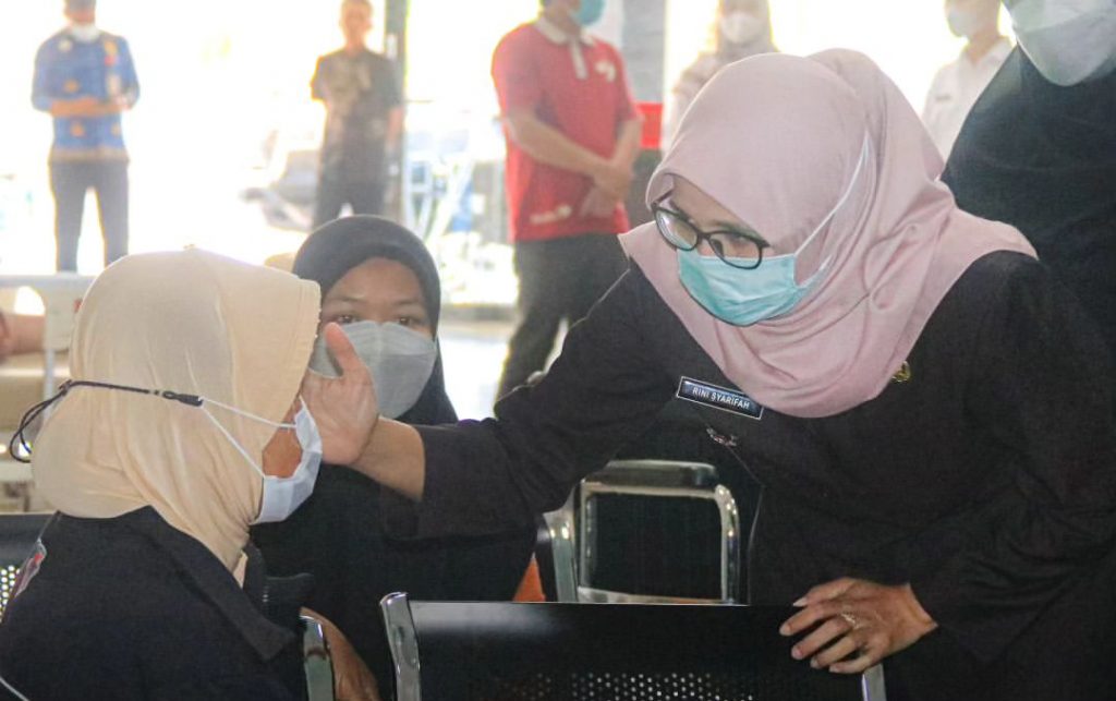 Bupati Blitar Hj. Rini Syarifah meninjau kegiatan yang diselenggarakan oleh Dinas Pemberdayaan Perempuan Perlindungan Anak Pengendalian Penduduk dan Keluarga Berencana (DP3AP2KB) Kabupaten Blitar bersama perwakilan BKKBN Provinsi Jawa Timur, terkait pelayanan program keluarga berencana dengan Metode Operasi Wanita (MOW) dan Metode Operasi Pria (MOP).