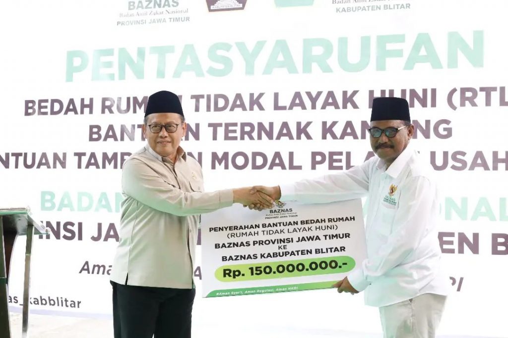 Bupati Blitar Hj. Rini Syarifah didampingi Asisten I menghadiri acara Pentasyarufan Baznas di Kecamatan Srengat pada Kamis, 19 Oktober 2023. Pada acara ini dilaksanakan Pentasyarufan Bedah Rumah Tidak Layak Huni (RTLH), Bantuan Ternak Kambing, Bantuan Tambahan Modal Pelaku Usaha Kecil.