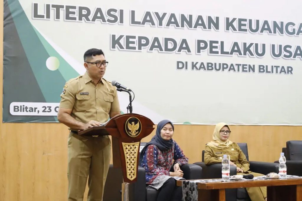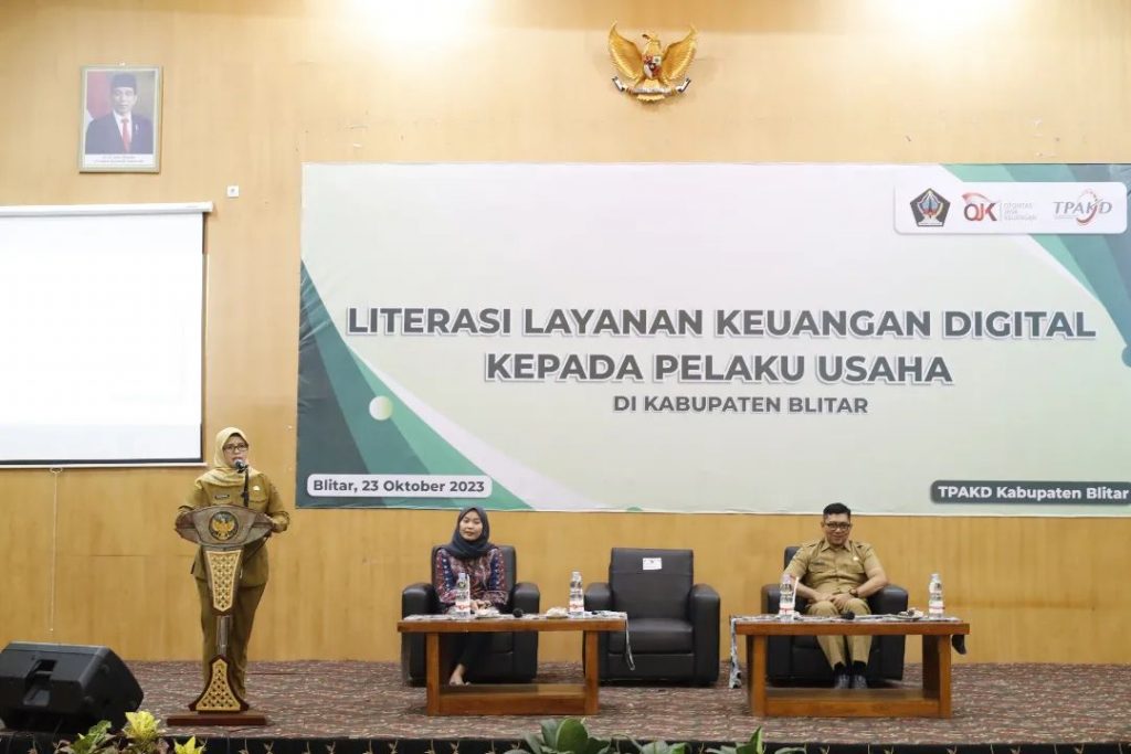 Bupati Blitar Hj. Rini Syarifah membuka acara Literasi Layanan Keuangan Digital Kepada Pelaku Usaha di Kabupaten Blitar bertempat Hall Kampung Coklat Pada Senin, 23 Oktober 2023. Acara ini diselenggarakan oleh TPAKD (Tim Percepatan Akses Keuangan Daerah) Kabupaten Blitar bekerjasama dengan OJK Kediri.