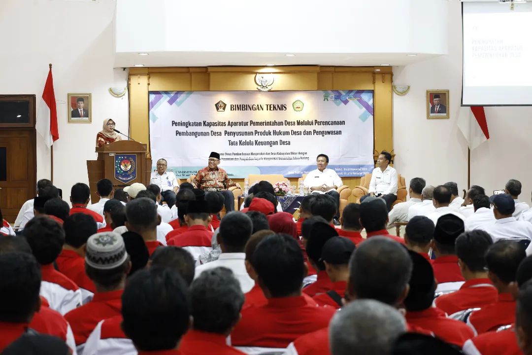Bupati Blitar Hj. Rini Syarifah membuka kegiatan Bimbingan Teknis Peningkatan Kapasitas Aparatur Pemerintahan Desa melalui Perencanaan Pembangunan Desa, Penyusunan Produk Hukum Desa dan Pengawasan Tata Kelola Keuangan Desa bertempat di Balai Pemerintahan Desa Yogyakarta pada Rabu, 8 November 2023.