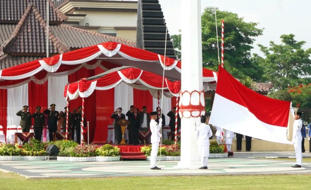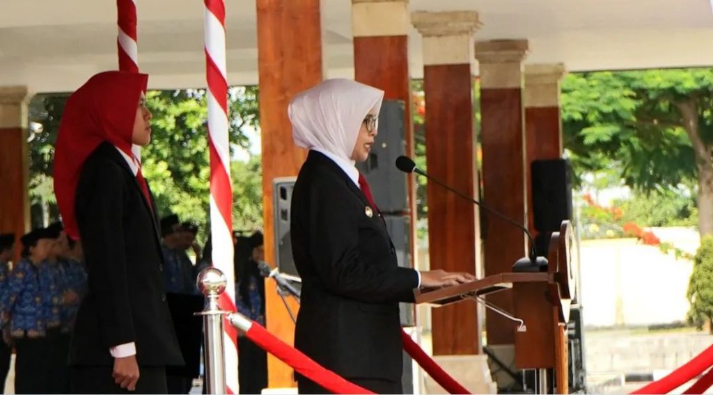 Bupati Blitar Hj. Rini Syarifah memimpin Upacara Peringatan Hari Pahlawan Ke-78 Tahun 2023 di Alun-Alun Kanigoro , Jumat 10 November 2023.