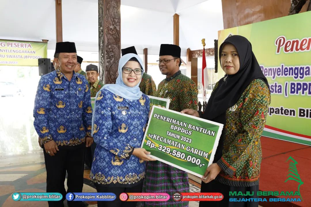 Bupati Blitar Hj. Rini Syarifah menghadiri kegiatan Penerimaan Bantuan Penyelenggara Pendidikan Diniyah dan Guru Swasta (BPPDGS) Provinsi Jawa Timur bertempat di Pendopo Ronggo Hadinegoro pada Jumat, 17 November 2023.
