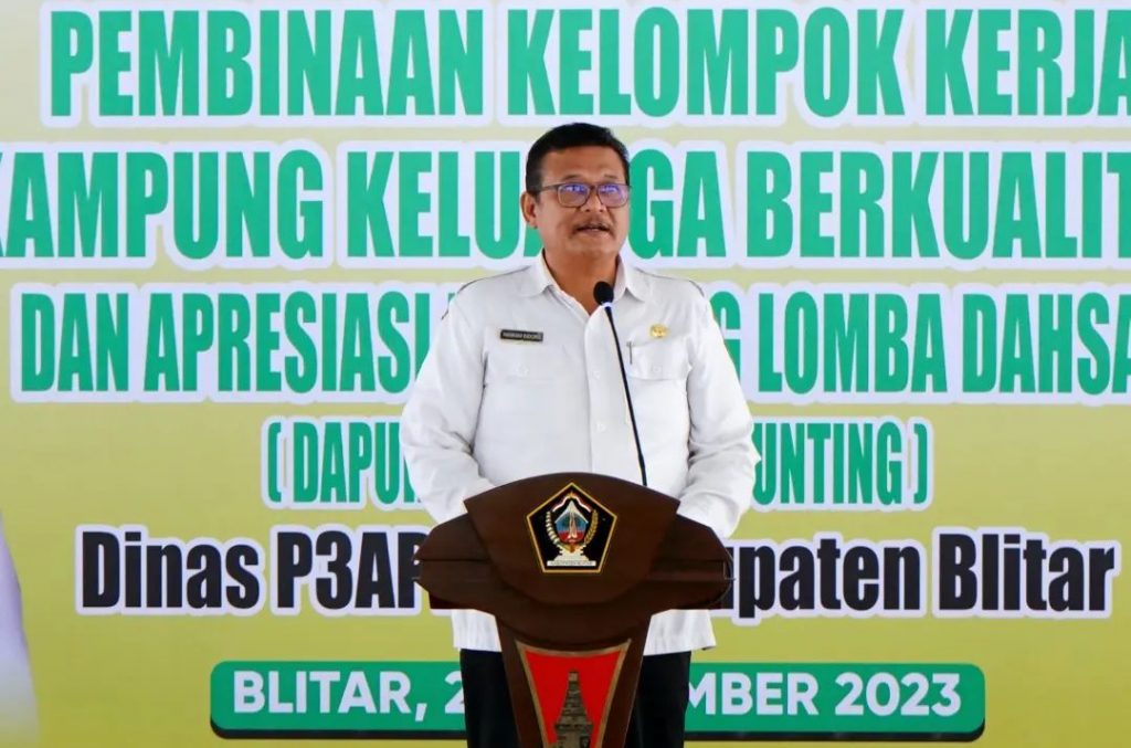 Bupati Blitar Hj. Rini Syarifah menghadiri kegiatan Pembinaan Kelompok Kerja Kampung KB dan Apresiasi Pemenang Lomba Dapur Sehat Atasi Stunting (DAHSAT), di Pendopo Ronggo Hadinegoro, Rabu 22 November 2023.