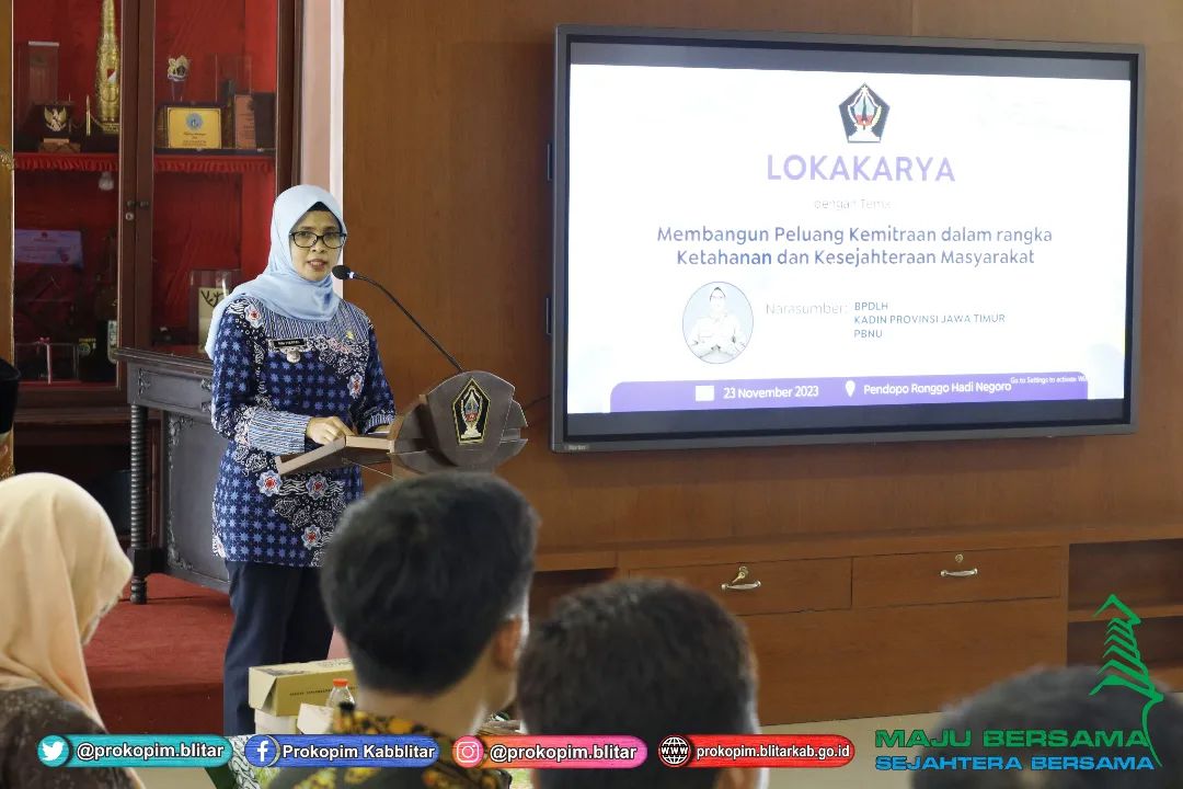 Bupati Blitar Hj. Rini Syarifah membuka Lokakarya dengan tema “Membangun Peluang Kemitraan dalam rangka Ketahanan dan Kesejahteraan Masyarakat” bertempat di Pendopo Ronggo Hadinegoro pada Kamis, 23 November 2023.