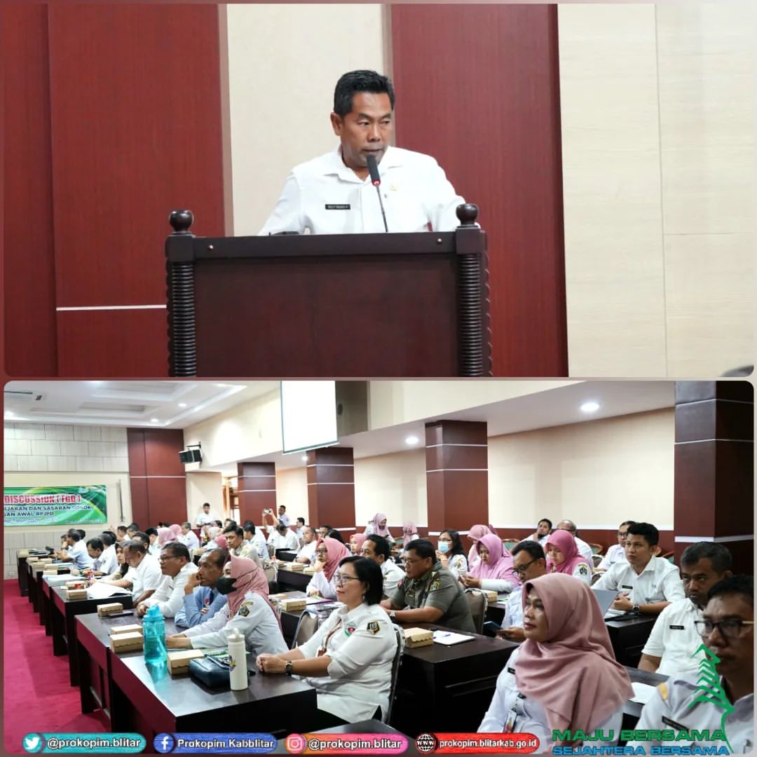 Periodesasi RPJPD 2005-2025 akan segera berakhir dan tahapan penyusunan RPJPD 2025-2045 sedang berlangsung. Oleh karena itu, dalam kegiatan Focus Group Discussion (FGD) Rancangan Awal (Ranwal) Rencana Pembangunan Jangka Panjang Daerah (RPJPD) Kabupaten Blitar Tahun 2025-2045, seluruh Perangkat Daerah hadir untuk berdiskusi guna mematangkan RPJPD Kabupaten Blitar Tahun 2025-2045, di Ruang Perdana pada hari Rabu 13 Desember 2023, dan dibuka langsung oleh Bupati Blitar Hj. Rini Syarifah.