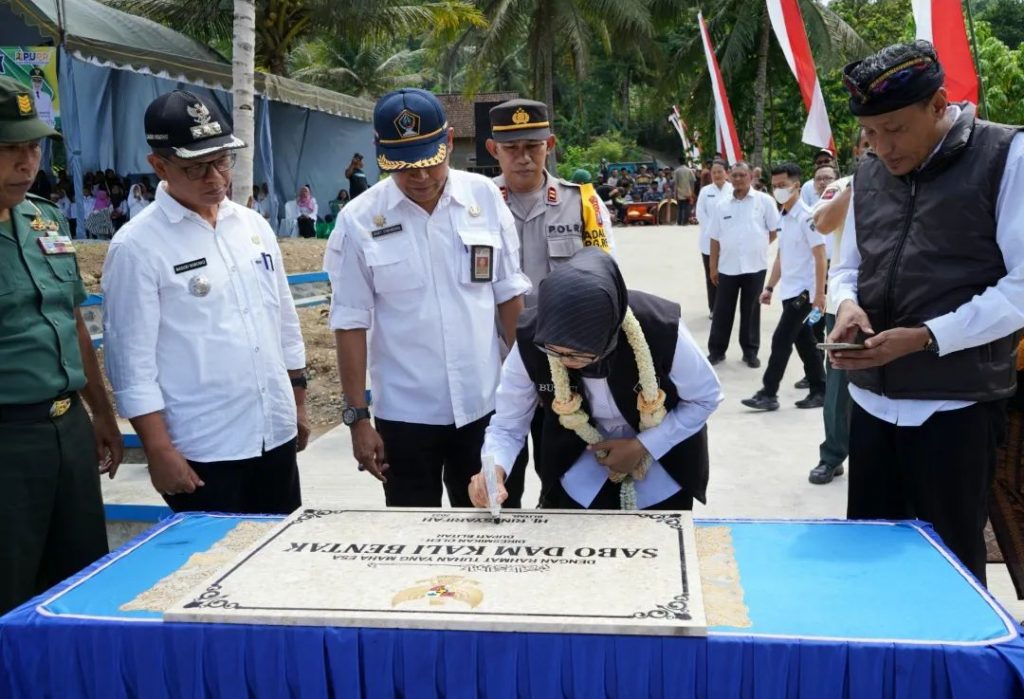 Bupati Resmikan Sabo Dam Kali Bentak di Desa Panggungrejo Kecamatan Panggungrejo pada hari Rabu 13 Desember 2023.