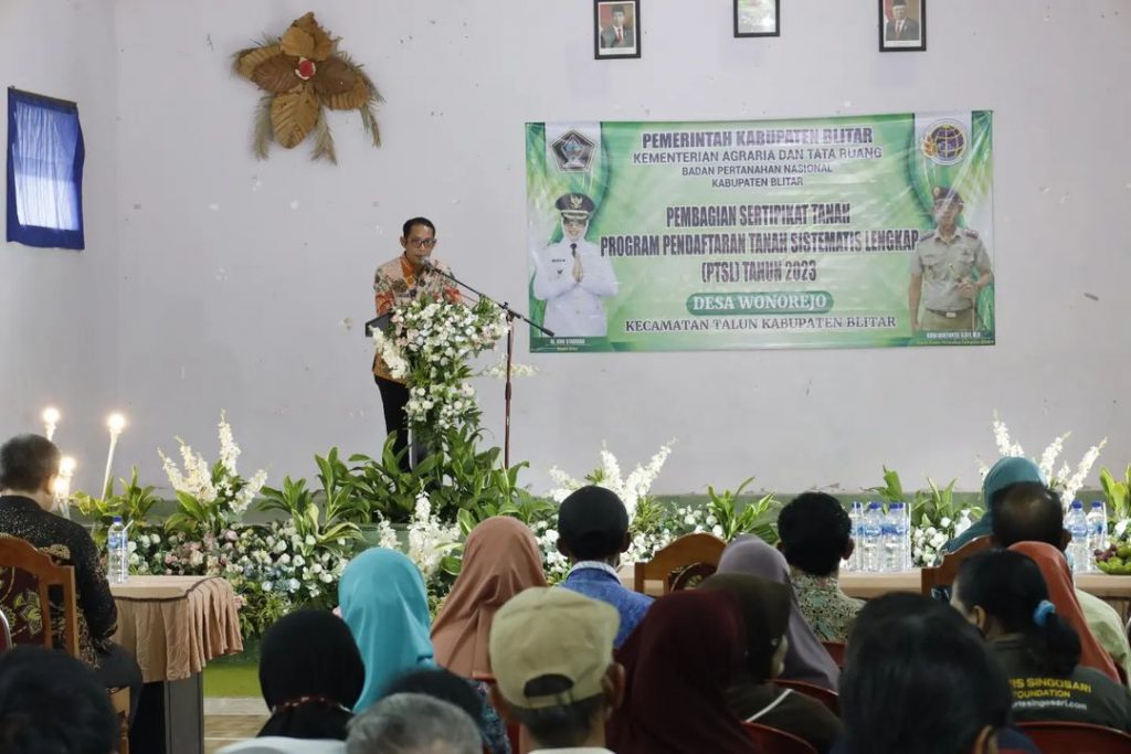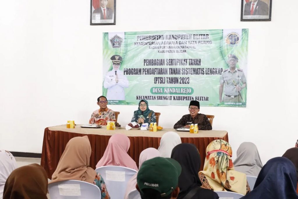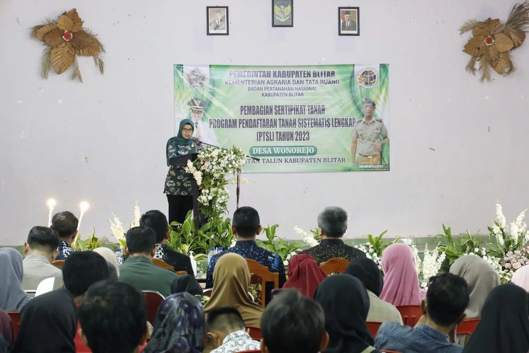 Bupati Blitar Hj. Rini Syarifah menghadiri acara Pembagian Sertipikat Tanah Program Pendaftaran Tanah Sistematis Lengkap (PTSL) Tahun 2023 yang diadakan di Desa Wonorejo Kecamatan Talun, Desa Selokajang dan Desa Kendalrejo Kecamatan Srengat pada Kamis, 14 Desember 2023. Acara ini turut dihadiri oleh Kepala Bappedalitnang, Kepala Dinas Perkim, Kepala Kantah Blitar dan Muspika setempat.
