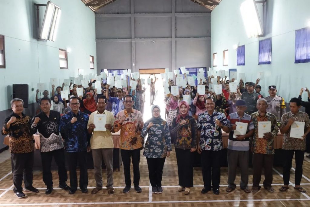 Pembagian sertipikat tanah program PTSL kali ini dilaksanakan di tiga desa yaitu Desa Wonorejo Kecamatan Talun dengan jumlah 618 sertipikat, Desa Selokajang Kecamatan Srengat berjumlah 481 sertipikat dan di Desa Kendalrejo Kecamatan Srengat berjumlah 480 sertipikat.