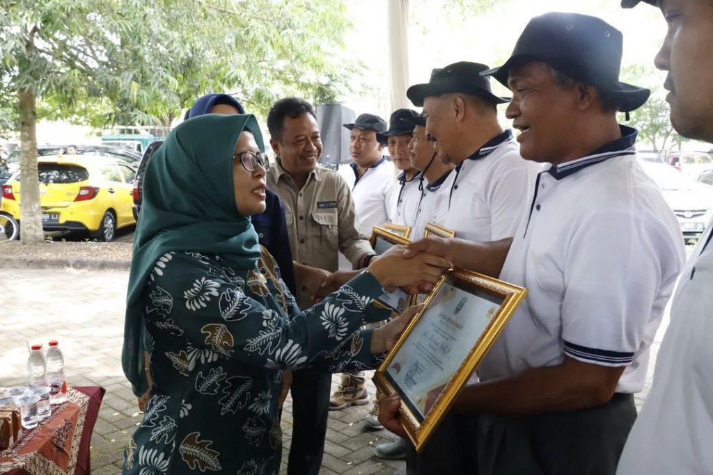 Pada kesempatan ini Mak Rini memberikan penghargaan kepada petugas inseminator atas keberhasilannya dibidang peternakan dan memberikan hadiah kepada pemenang kontes pedet.