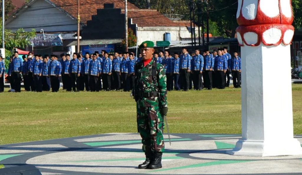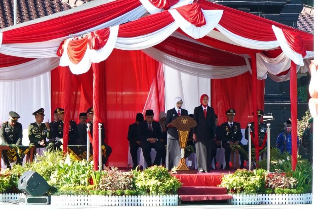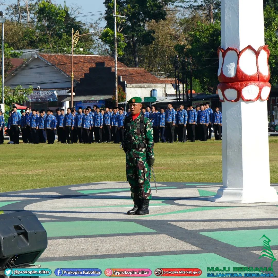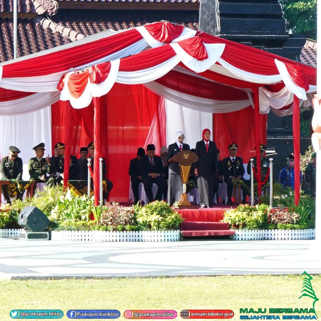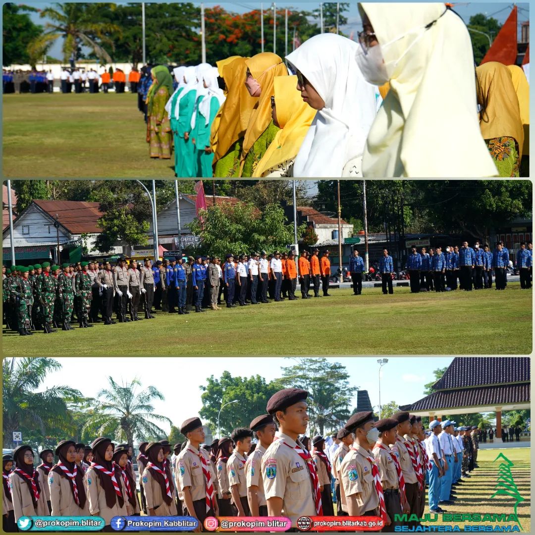 Bupati Blitar Hj. Rini Syarifah memimpin Upacara Peringatan Hari Bela Negara Ke-75 Tahun 2023 di Alun-Alun Kanigoro pada hari Selasa 19 Desember 2023.