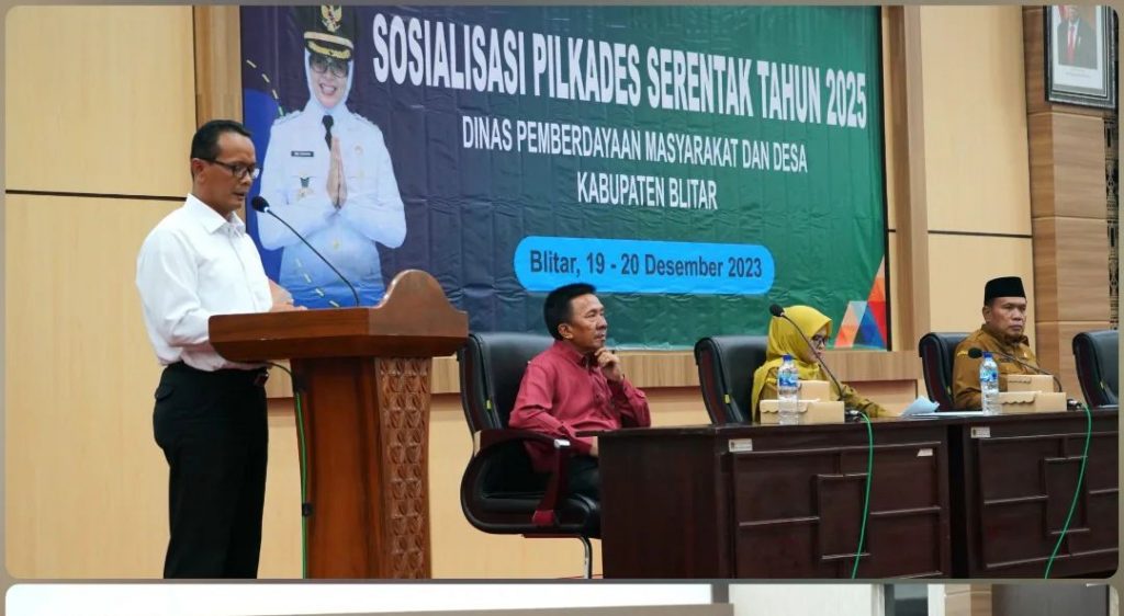 Pemerintah Kabupaten Blitar melaksanakan kegiatan Sosialisasi Pemilihan Kepala Desa Serentak Tahun 2025. Acara yang diinisiasi oleh Dinas Pemberdayaan Masyarakat Dan Desa ini dibuka langsung oleh Bupati Blitar dan diikuti oleh Seluruh Kepala Desa Kabupaten Blitar, di Ruang Candi Penataran Kantor Bupati Blitar Kanigoro, 19 Desember 2023.