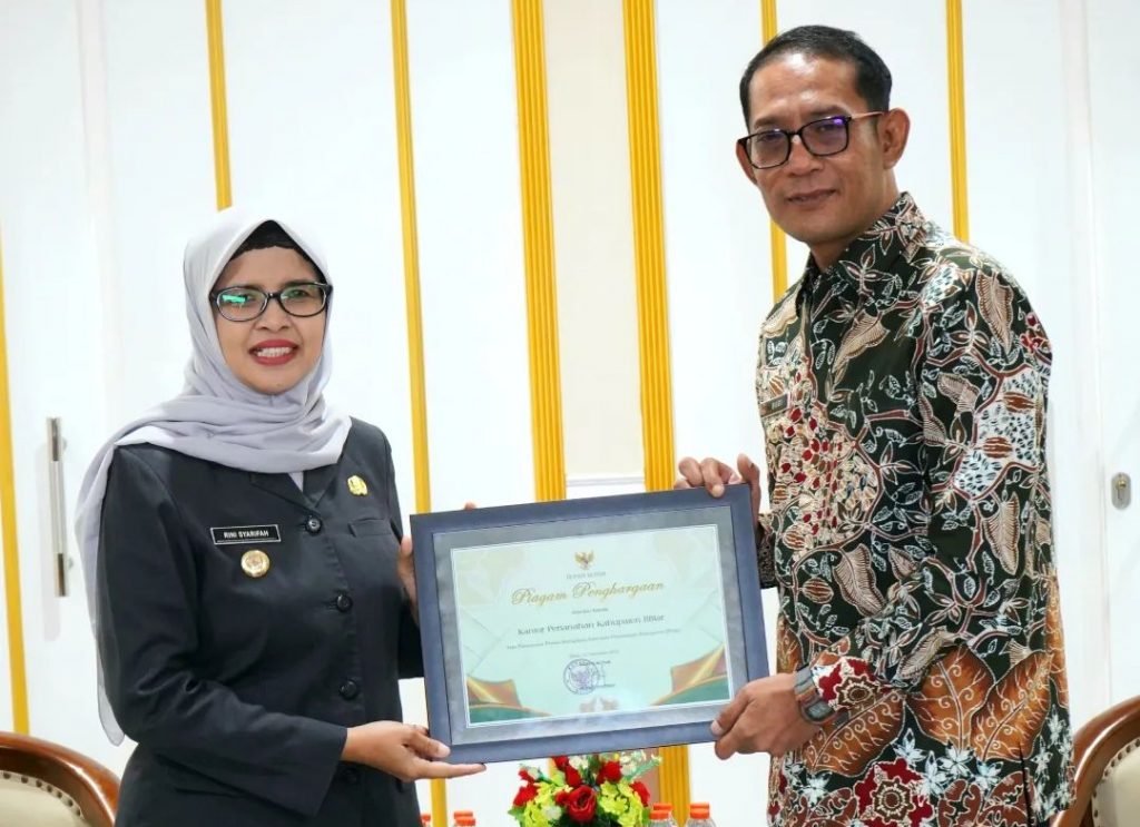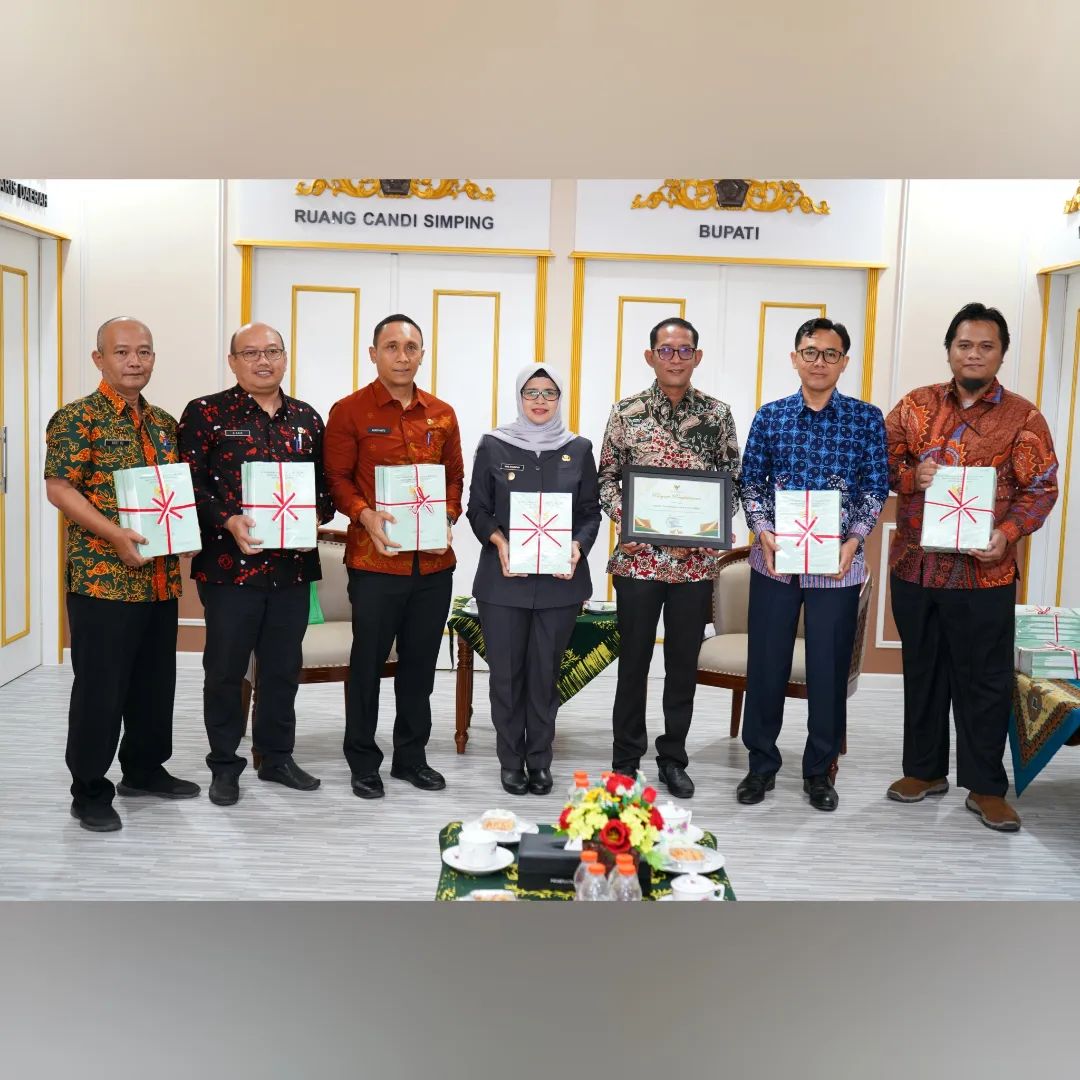 Bupati Blitar Hj. Rini Syarifah menerima kunjungan dari Kepala ATRBPN Kabupaten Blitar di Kantor Bupati Blitar Kanigoro, hari Kamis 21 Desember 2023.