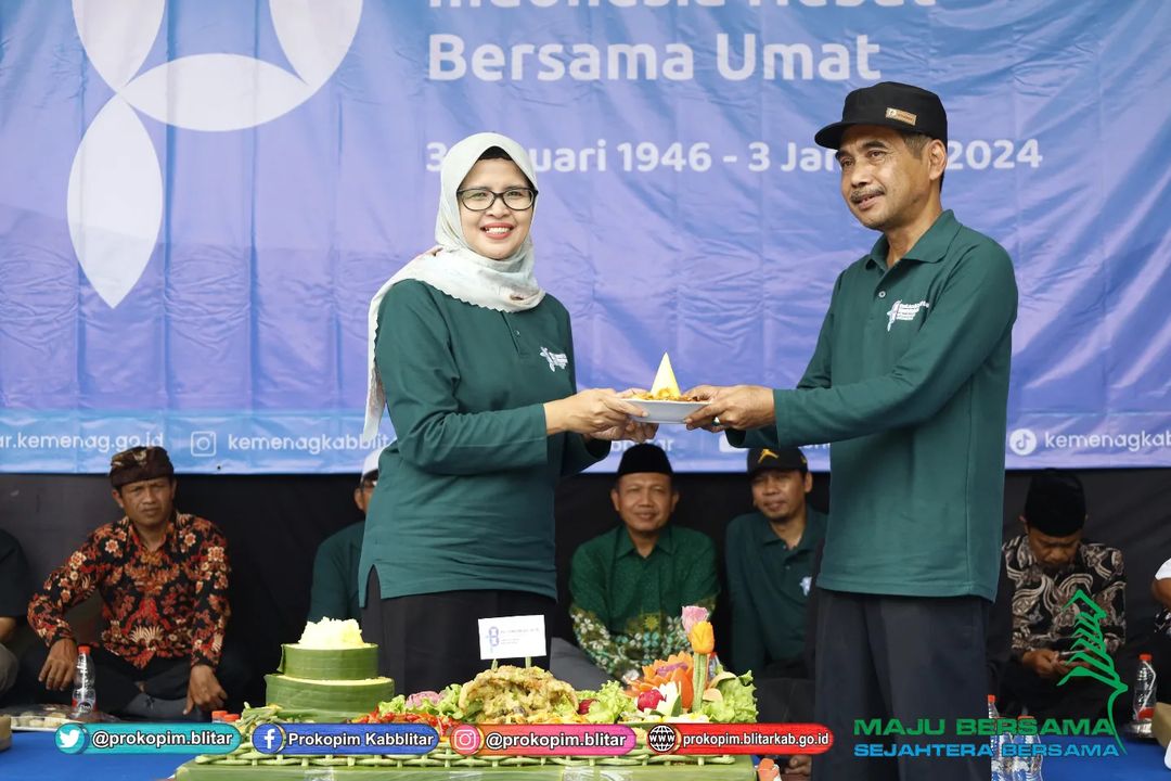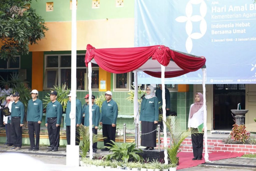 Bupati Blitar Hj. Rini Syarifah menjadi pembina upacara pada peringatkan ke – 78 Hari Amal Bhakti Kementerian Agama RI yang diselenggarakan oleh Kementerian Agama Kabupaten Blitar bertempat di MAN 2 Blitar pada Rabu, 3 Januari 2024. Kegiatan peringatan Hari Amal Bhakti ini mengambil tema “Indonesia Hebat Bersama Umat”.