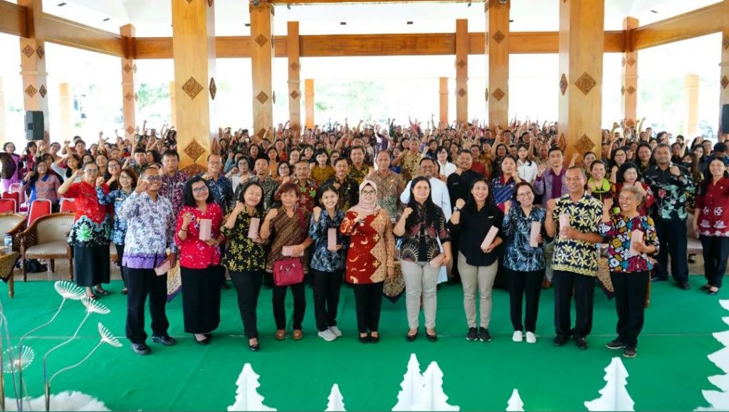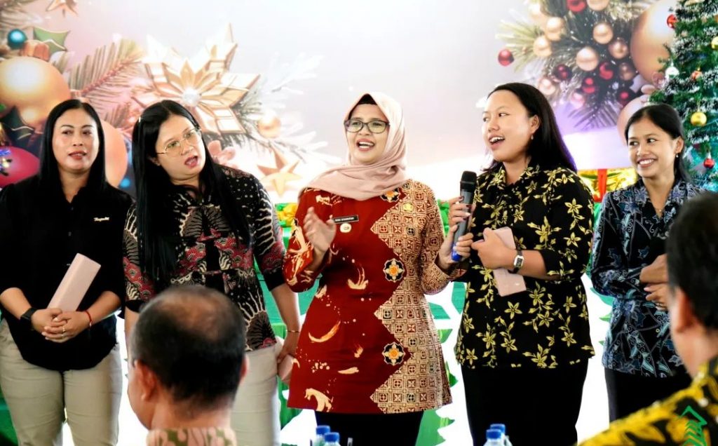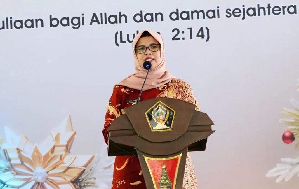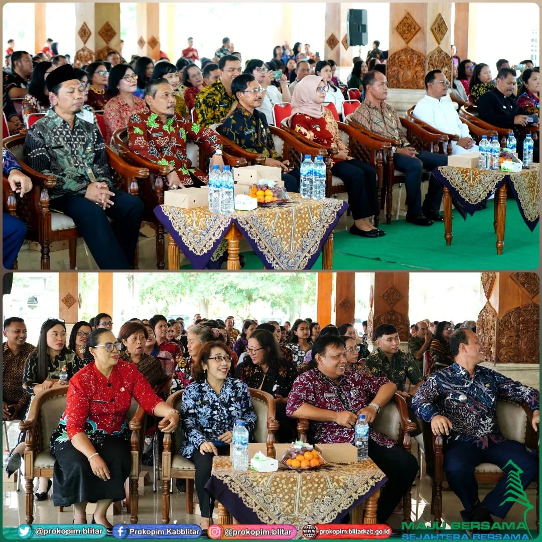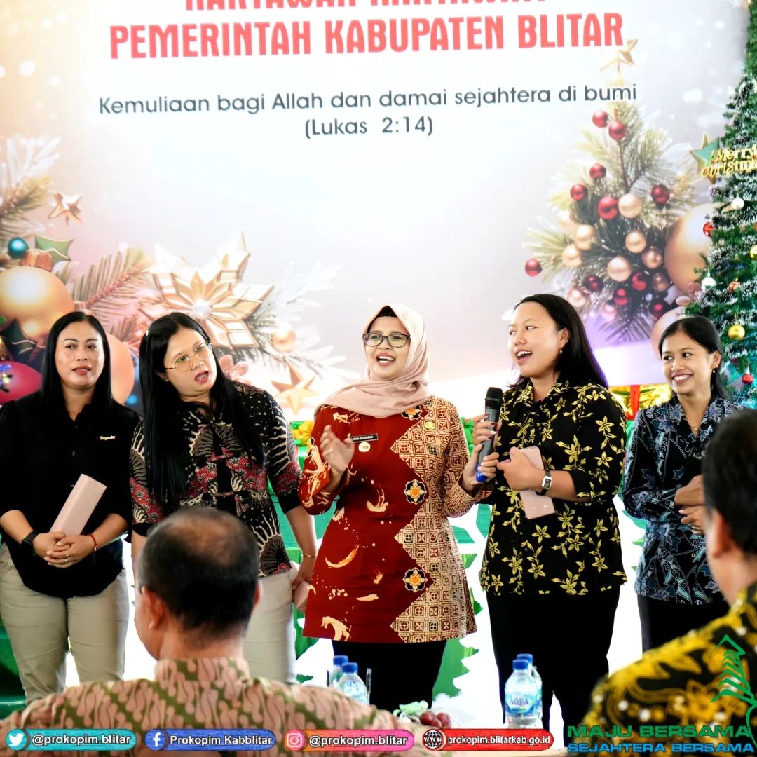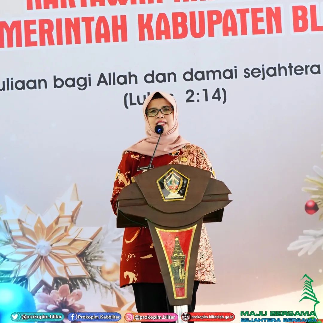 Bupati Blitar Hj. Rini Syarifah menghadiri Perayaan Natal Tahun 2023 dan Pembinaan Kerohanian Karyawan/Karyawati Kristiani di Lingkungan Pemerintah Kabupaten Blitar di Pendopo Sasana Adhi Praja pada hari Jumat tanggal 12 Januari 2023.