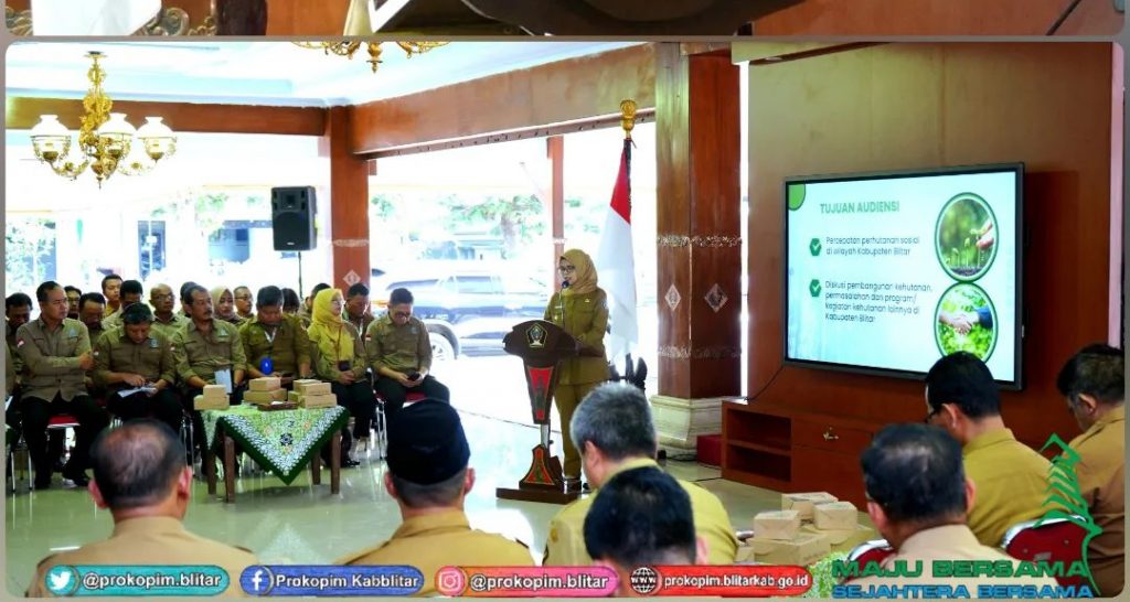 Dalam rangka optimalisasi pelaksanaan pembangunan kehutanan, Bupati Blitar Hj. Rini Syarifah bersama OPD Kabupaten Blitar melaksanakan audiensi dengan Dinas Kehutanan Provinsi Jawa Timur di Pendopo Ronggo Hadinegoro, Selasa 30 Januari 2024.