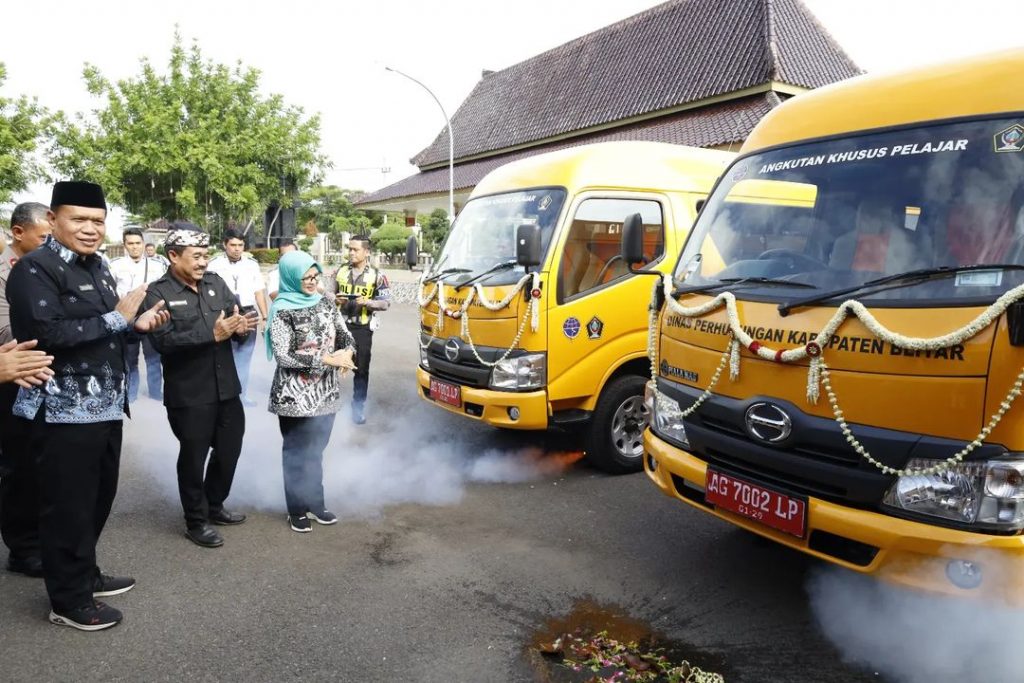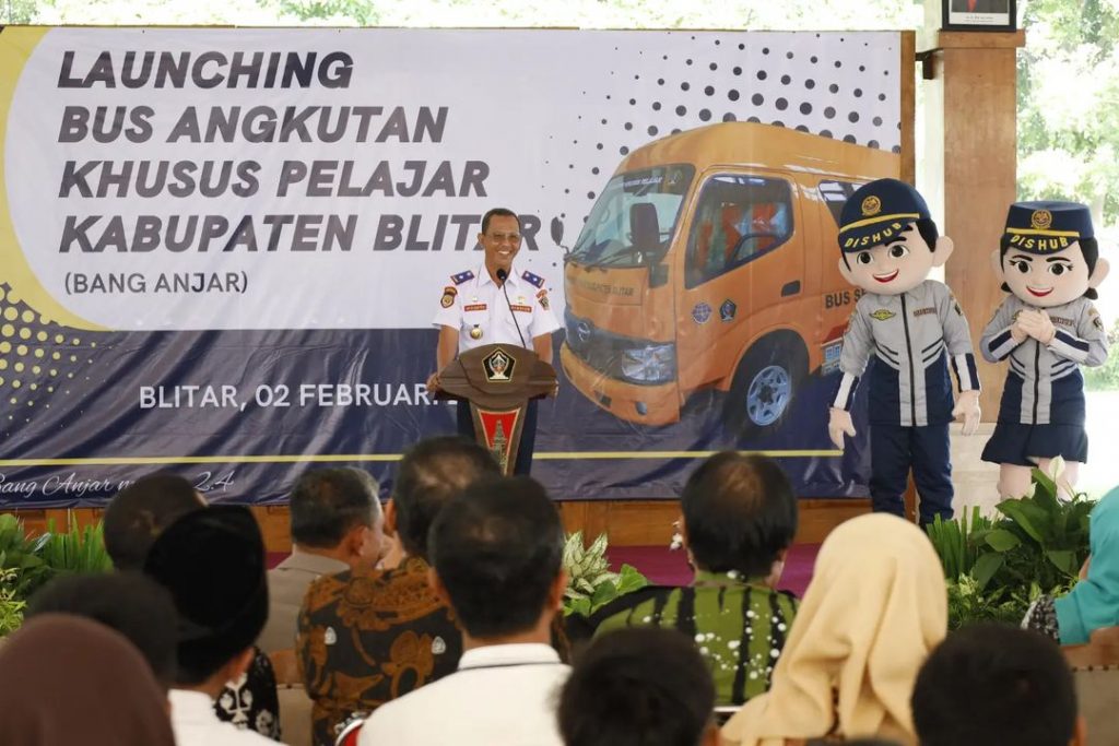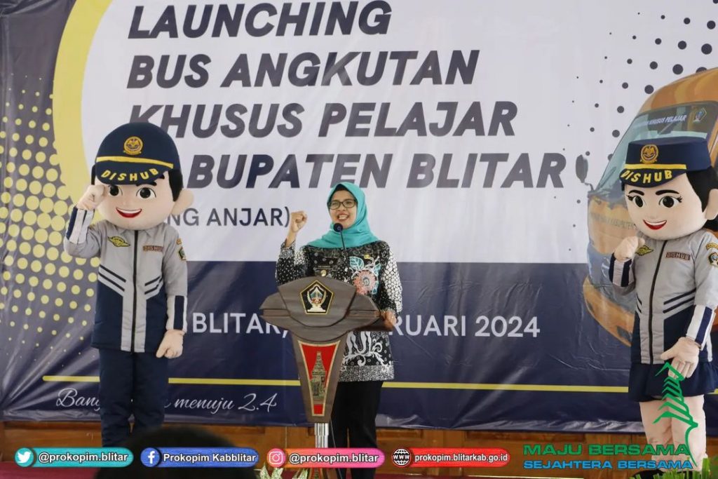 Bupati Blitar Hj. Rini Syarifah melaunching Bus Angkutan Khusus Pelajar Kabupaten Blitar (Bang Anjar) bertempat di Pendopo Sasana Adhi Praja, Kanigoro pada Jumat 2 Februari 2024. “Bang ANJAR” merupakan salah satu inovasi dalam Public Service Obligation sektor Transportasi sebagai salah satu solusi untuk menekan angka kecelakaaan di kalangan pelajar sekaligus sebagai bentuk komitmen aplikasi Core Values ASN BerAKHLAK Pemerintah Kabupaten Blitar tepatnya berorientasi pada pelayanan dan kolaboratif.