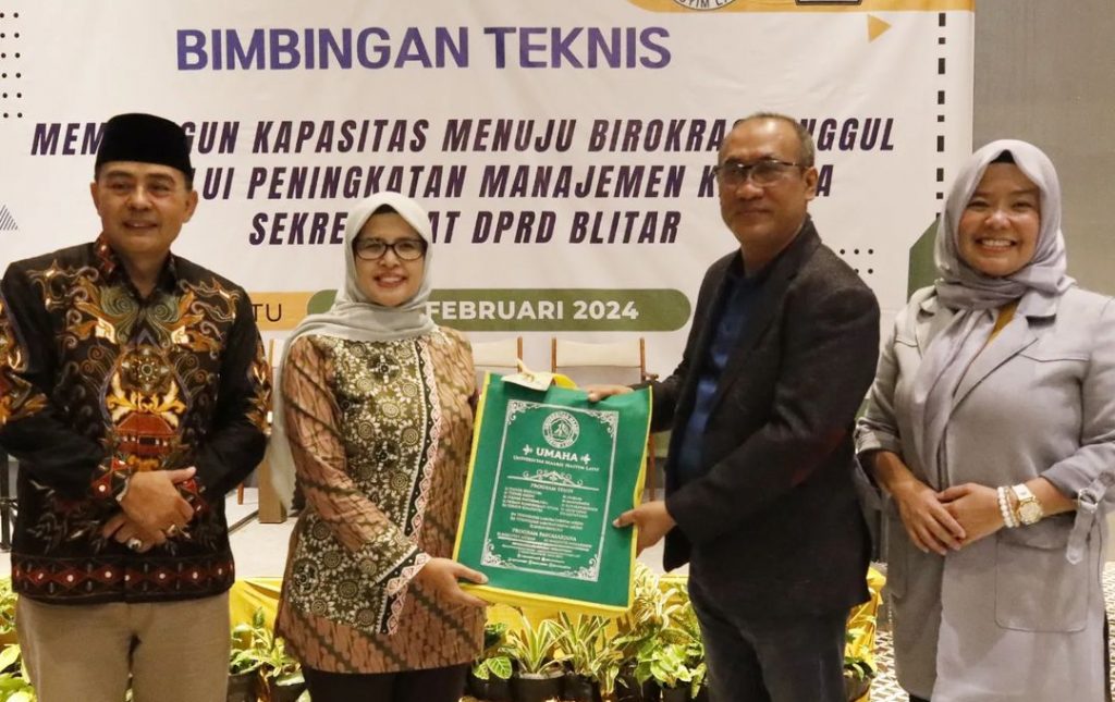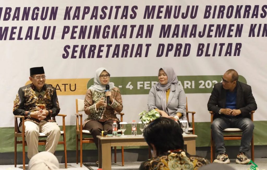 Bupati Blitar Hj. Rini Syarifah menghadiri kegiatan Bimbingan Teknis yang diadakan oleh Sekretariat DPRD Kabupaten Blitar pada Jumat, 3 Februari 2024 bertempat di Hotel Horison Trunojoyo, Batu. Kegiatan Bimtek ini mengambil tema “Membangun Kapasitas Menuju Birokrasi Unggul melalui Peningkatan Manajemen Kinerja Sekretariat DPRD Blitar”.