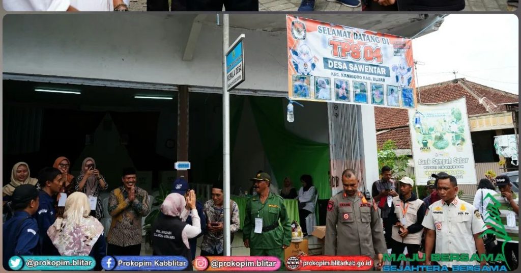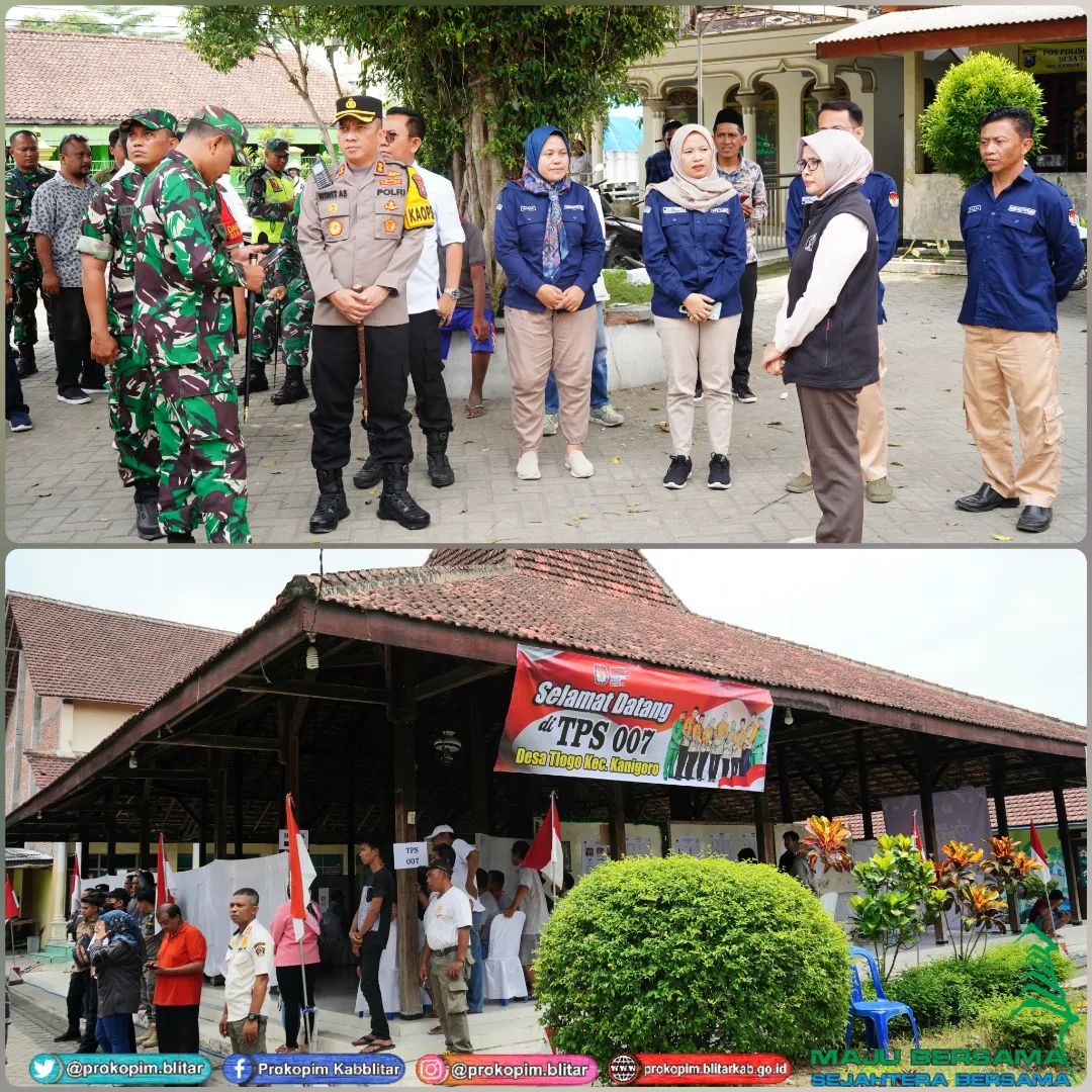 Bupati Blitar Hj. Rini Syarifah bersama Forkopimda melaksanakan monitoring Pemilu 2024 yang dilaksanakan pada hari ini, tanggal 14 Februari 2024. Titik pantau atau monitoring Tempat Pemungutan Suara (TPS), di Kecamatan Garum (Desa Pojok dan Kelurahan Tawangsari) dan Kecamatan Kanigoro (Desa Sawentar dan Desa Tlogo).