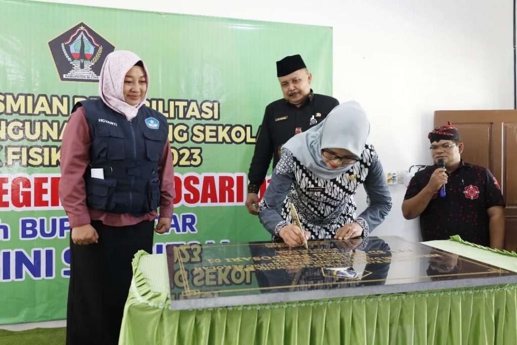 Bupati Blitar Hj. Rini Syarifah meresmikan Rehabilitasi dan Pembangunan Gedung Sekolah di SDN Bendosari 01 Kecamatan Kademangan pada Jumat, 23 April 2024. Rehabilitasi dan pembangunan ini berasal dari Dana Alokasi Khusus (DAK) Fisik Tahun 2023.