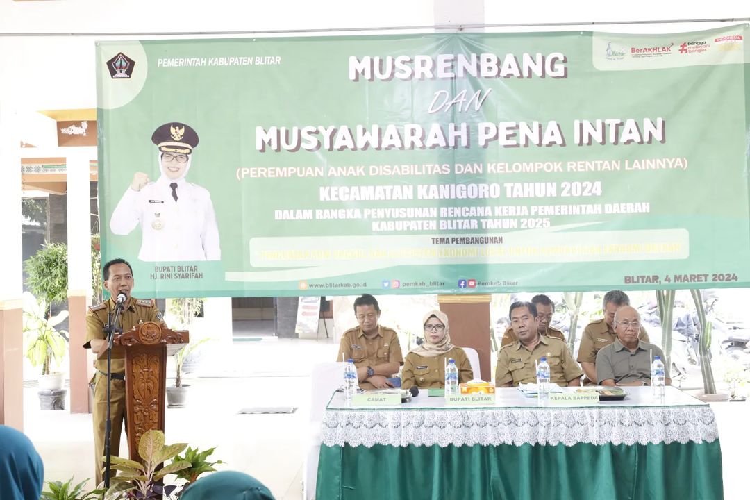 Bupati Blitar Hj. Rini Syarifah membuka acara Musrenbang dan Musyawarah Pena Intan di Kecamatan Kanigoro pada Senin, 4 Maret 2024. Musrenbang ini dihadiri oleh Kepala OPD, Forpimcam Kanigoro, Kepala Desa / Kelurahan dan Ketua PKK Desa / Kelurahan se Kecamatan Kanigoro, Tokoh Agama, Tokoh Masyarakat, dan lembaga yang ada di Kanigoro.