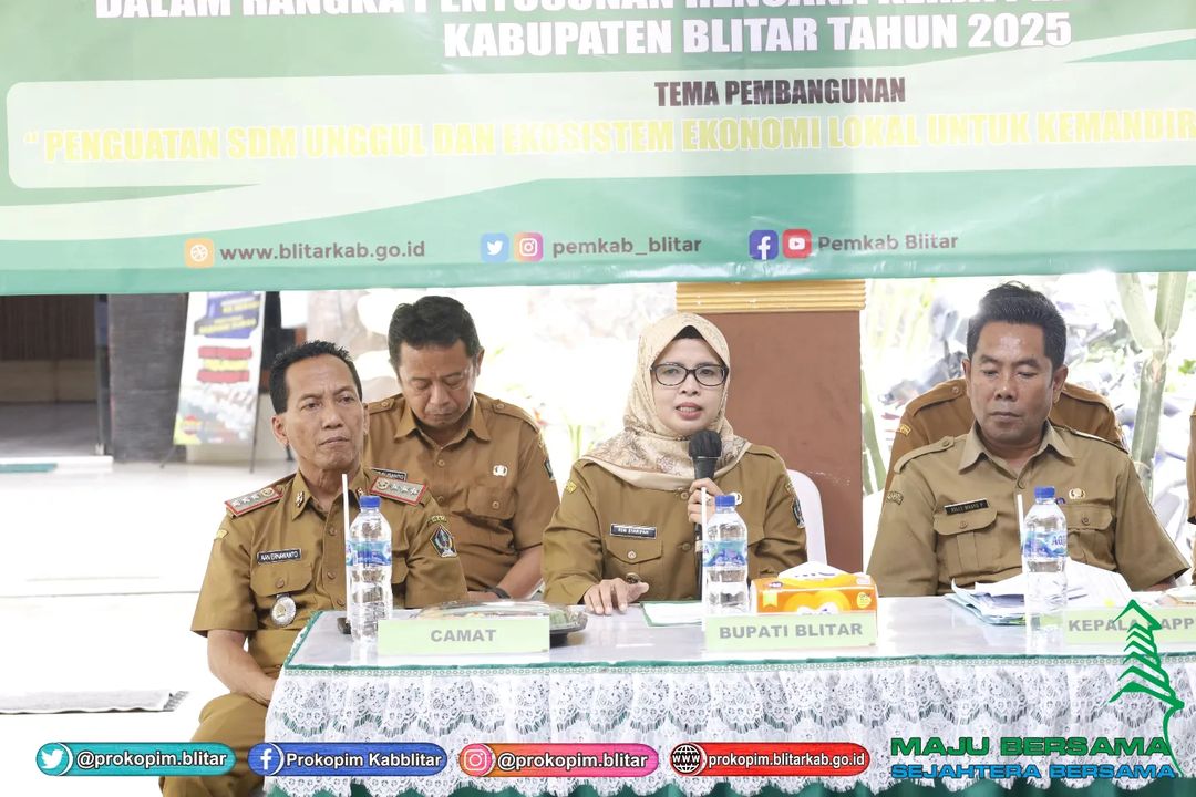 Mak Rini sapaan akrab Bupati Blitar menyampaikan kepada seluruh peserta Musrenbang dan Musyawarah Pena Intan RKPD Tahun 2025 ditingkat kecamatan untuk mengikuti dengan aktif dan seksama. Karena usulan atau aspirasi dari masyarakat dan usulan dari Desa / Kelurahan akan dibawa ke Musrenbang dan Musyawarah Pena Intan di tingkat kabupaten.