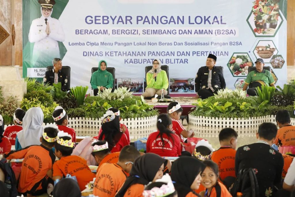 Mak Rini sapaan akrab Bupati Blitar menyampaikan acara gebyar pangan ini merupakan salah satu cara pengenalan kepada siswa siswi Sekolah Dasar dan orang tua akan pentingnya konsumsi pangan yang Beragam Bergizi Seimbang dan Aman (B2SA) dalam mendukung pemerintah meningkatkan sumber daya manusia generasi emas 2045. Harapannya semakin banyak makanan yang dikonsumsi untuk pemenuhan gizi yang memenuhi prinsip B2SA.