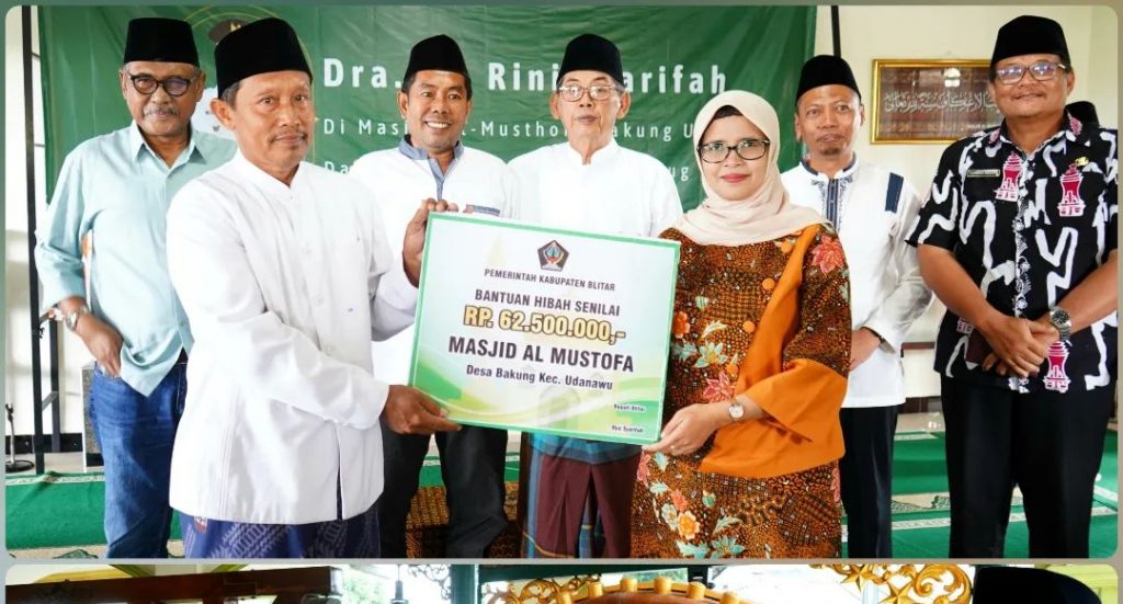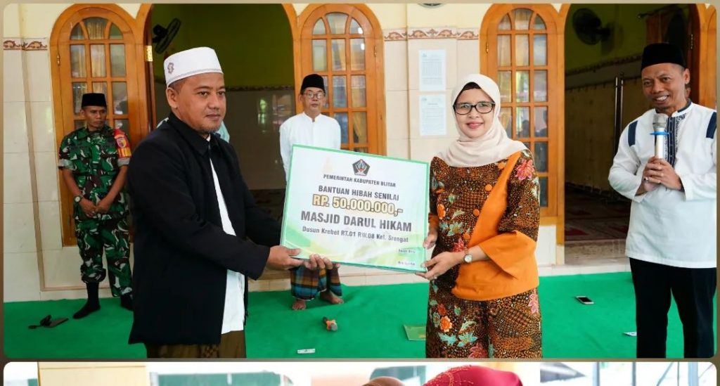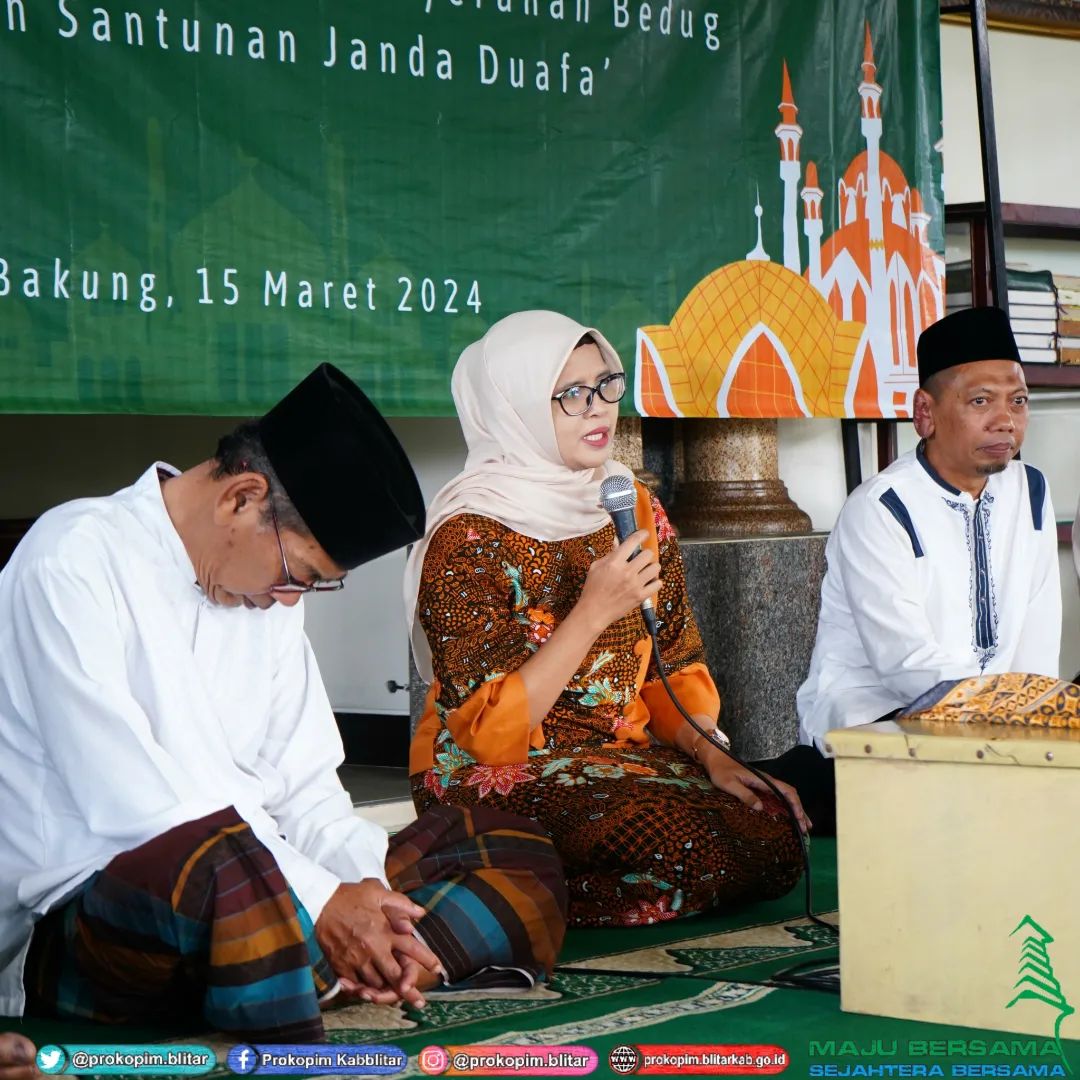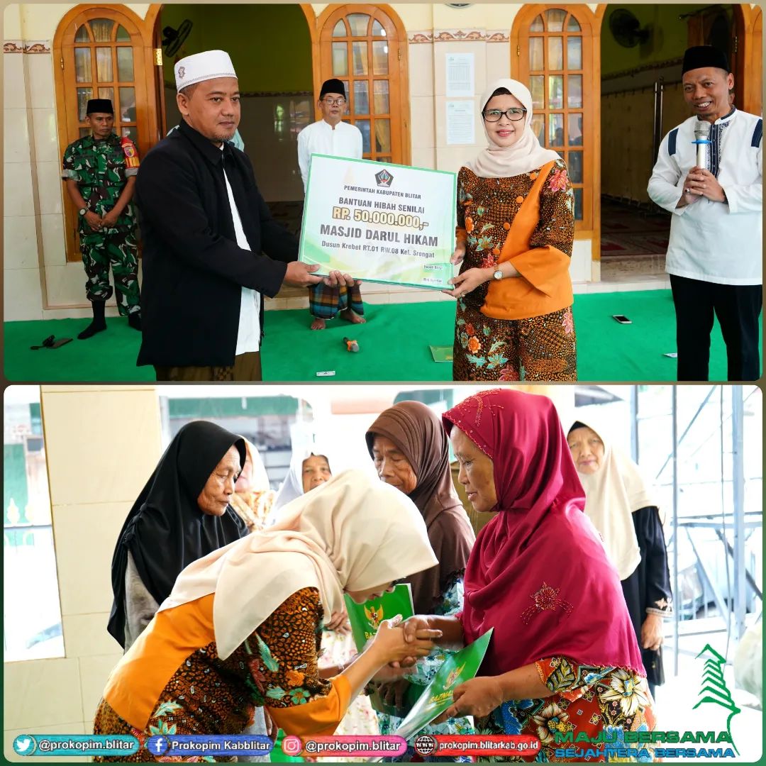 Bupati Blitar Hj. Rini Syarifah menyerahkan santunan kepada kaum duafa/janda dan Bantuan hibah ke Masjid Darul Hikam, Dsn. Krebet Kelurahan Srengat Kecamatan Srengat dan Masjid Al Mustofa, Desa Bakung Kecamatan Udanawu , pada Hari Jumat 15 Maret 2024. Turut mendampingi dalam acara tersebut, Ketua Baznas, Ketua MUI, dan OPD Kabupaten Blitar.
