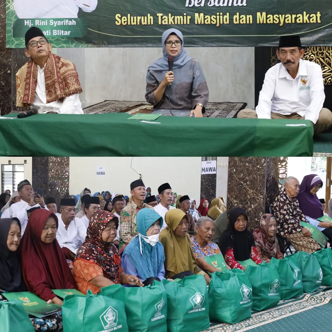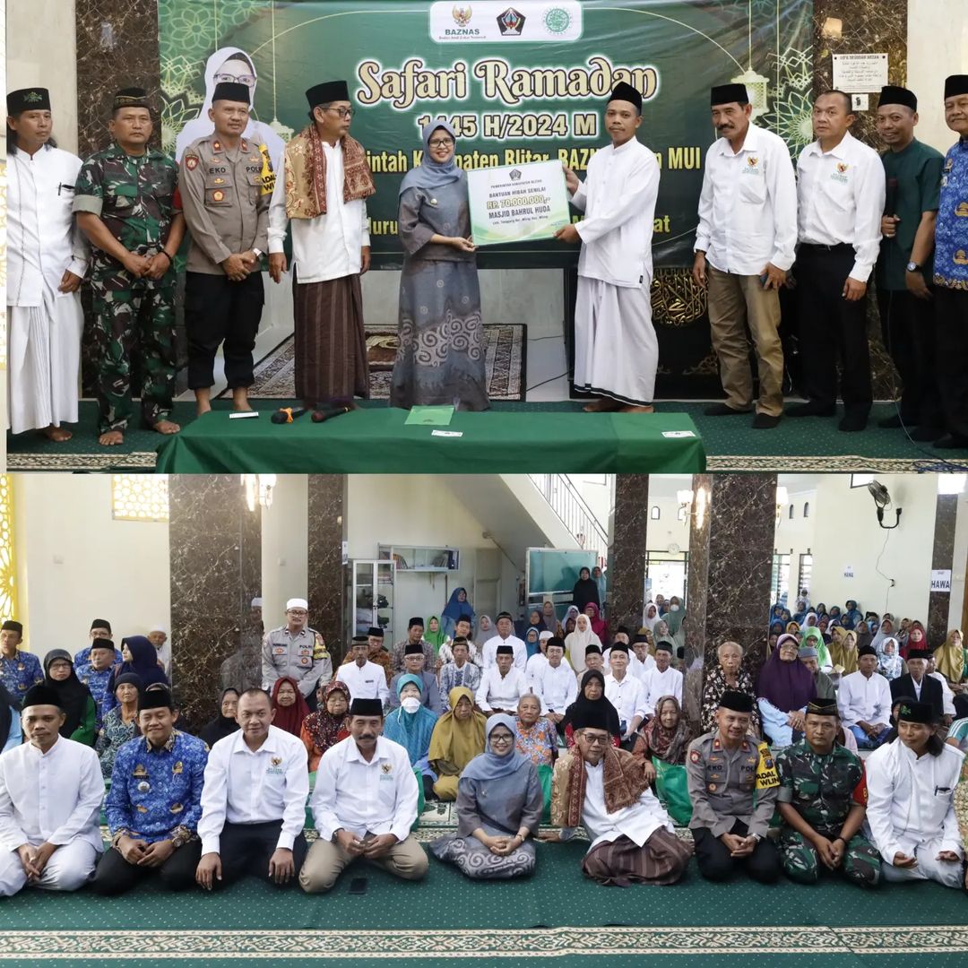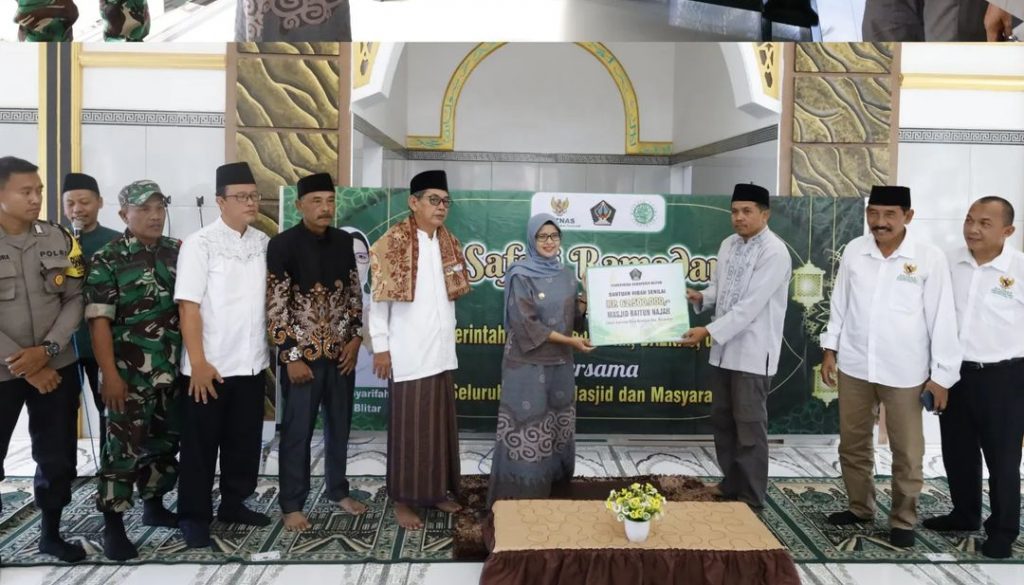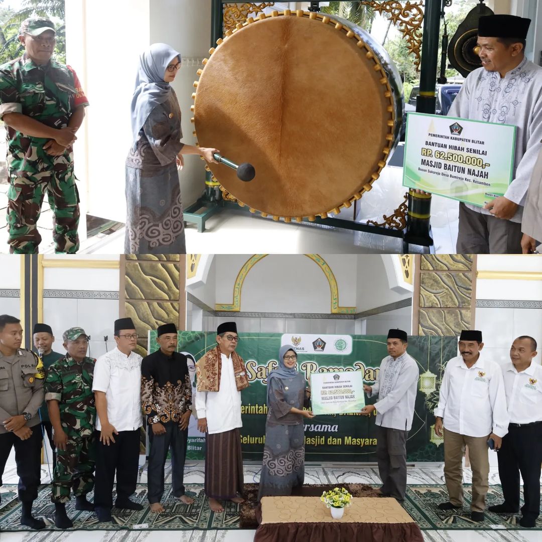 Bupati Blitar Hj. Rini Syarifah memberikan bantuan hibah untuk Masjid Baitun Najah Desa Bumirejo Kesamben dan Masjid Bahrul Huda Kelurahan Wlingi pada acara Safari Ramadan 1445 H (18/03).