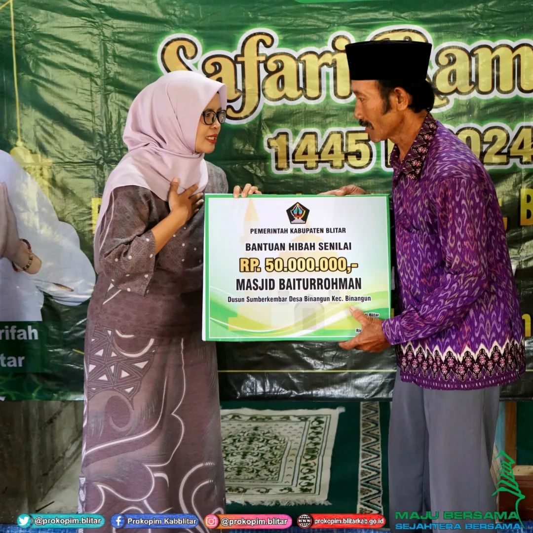 Pemerintah Kabupaten Blitar memberikan bantuan hibah untuk Masjid Usisa Littaqwa di Dusun Wates Desa Wates Kecamatan Wates dan Dusu Sumberkembar Desa Binagun Kecamatan Binangun. Bantuan tersebut diserahkan langsung oleh Bupati Blitar Hj. Rini Syarifah dalam kegiatan safari ramadan yang dilaksanakan pada hari Senin 25 Maret 2024.