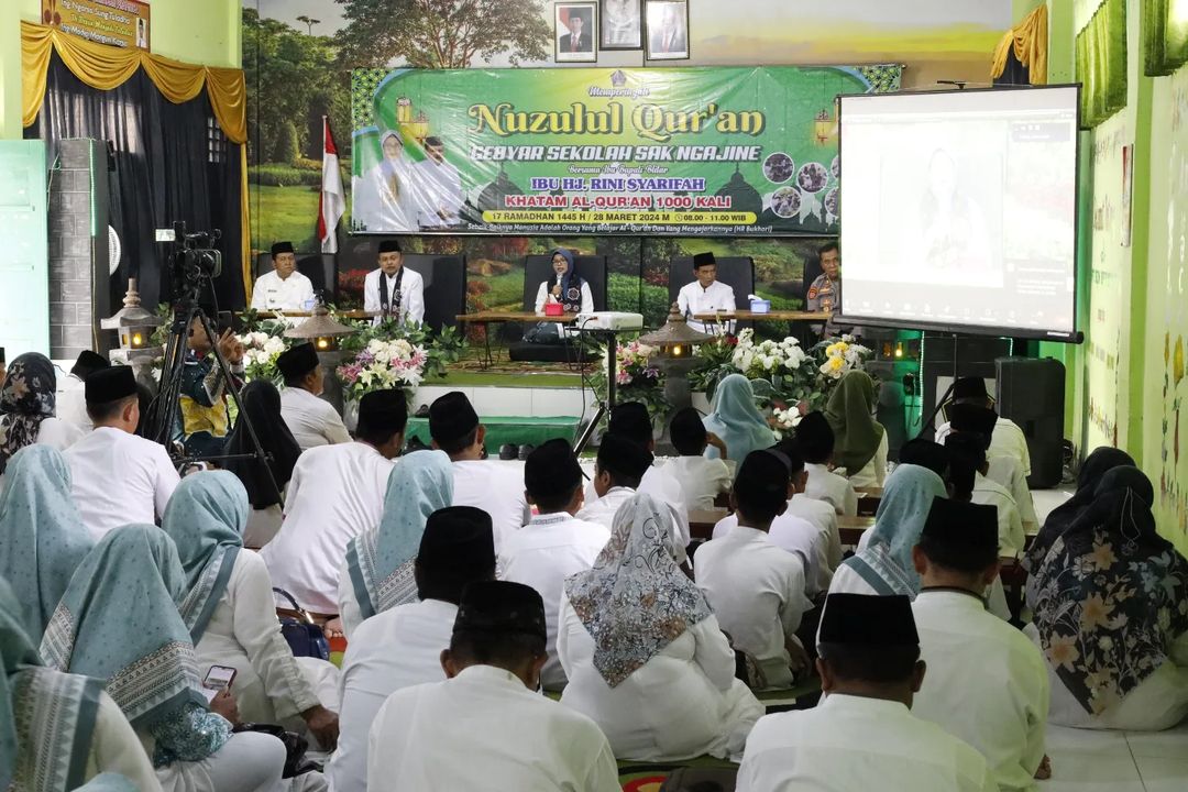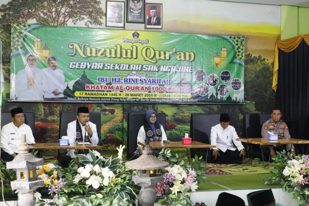 Bupati Blitar Hj. Rini Syarifah membuka Khataman Al – Quran 1000 kali yang diikuti oleh pelajar Sekolah Dasar hingga Sekolah Menengah Pertama secara luring dan daring di aula SDN Srengat 01 pada Kamis, 28 Maret 2024. Khataman Al Quran ini diselenggarakan dalam rangka memperingati Nuzulul Quran “Gebyar Sekolah Sak Ngajine” pada bulan ramadan diprakarsai oleh Dinas Pendidikan Kabupaten Blitar.