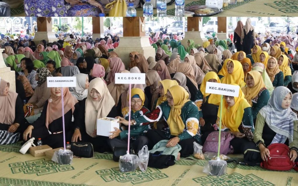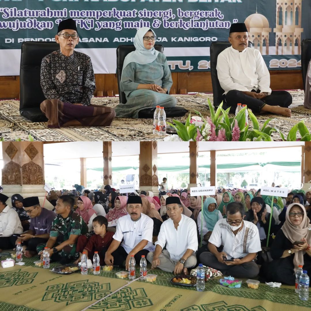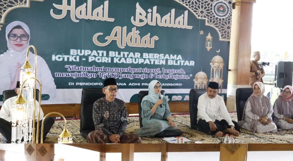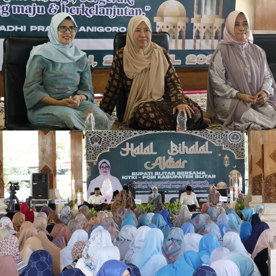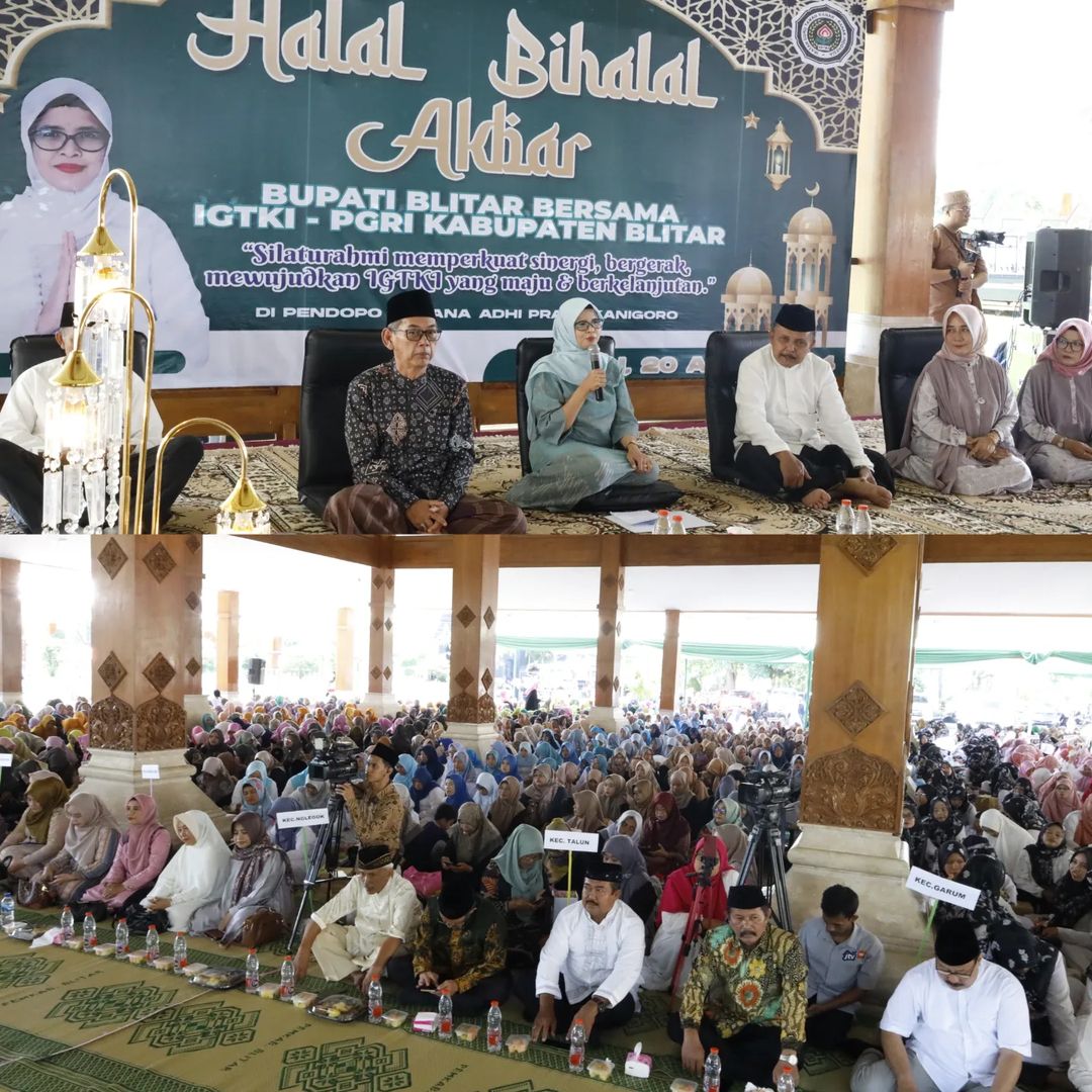 Bupati Blitar Hj. Rini Syarifah menghadiri acara Halal Bihalal Akbar yang diselenggarakan oleh IGTKI – PGRI Kabupaten Blitar bertempat di Pendopo Sasana Adhi Praja pada Sabtu, 20 April 2024.