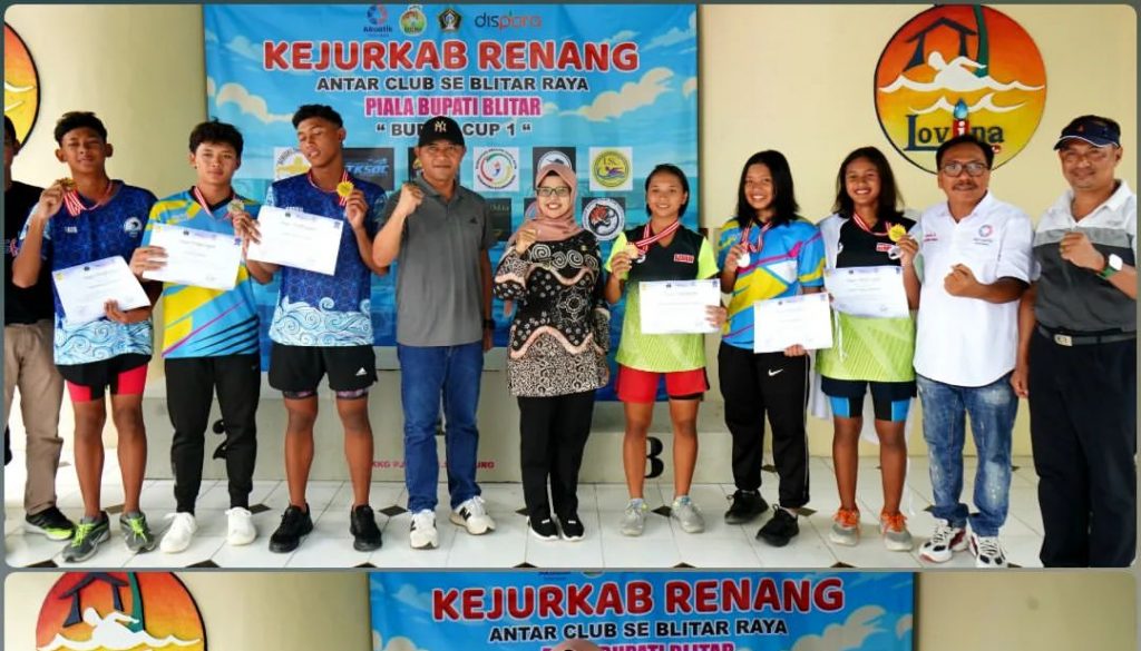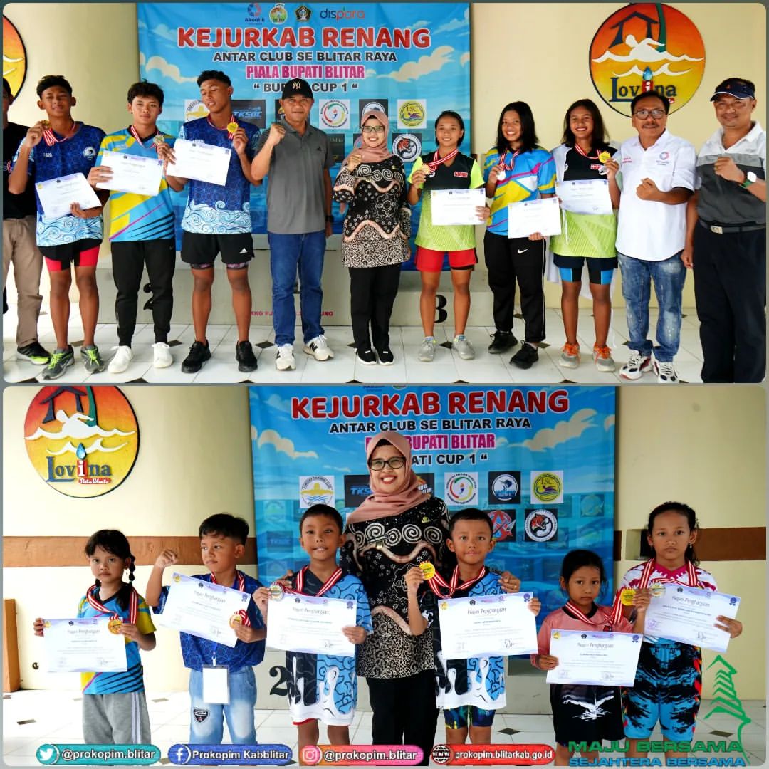 Bupati Blitar Hj. Rini Syarifah menutup Kejurkab Renang antar Club se-Blitar Raya Piala Bupati. Event tersebut diselenggarakan di Kolam Renang Lovina Kecamatan Talun pada Minggu 28 April 2024.