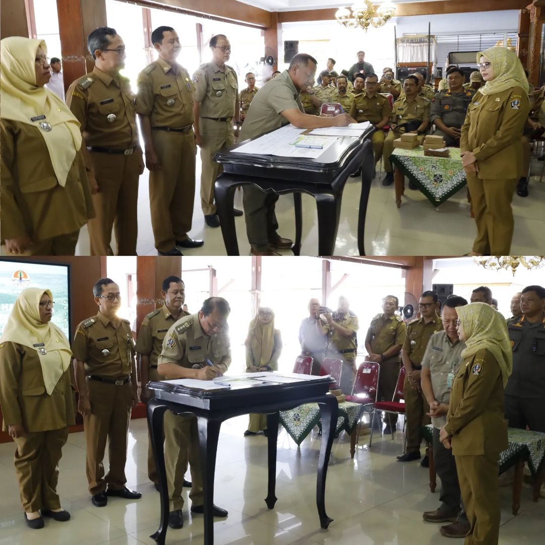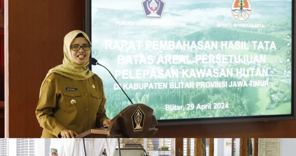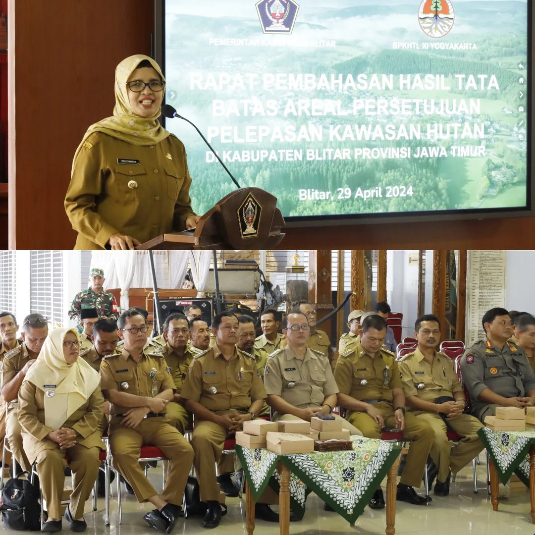 Bupati Blitar Hj. Rini Syarifah membuka Rapat Pembahasan Hasil Tata Batas Areal Persetujuan Pelepasan Kawasan Hutan di Kabupaten Blitar Provinsi Jawa Timur bersama Kepala Balai Pemantapan Kawasan Hutan dan Tata Lingkungan (BPKHTL) XI Yogyakarta Suhendro A. Basori. Kegiatan ini diselenggarakan di Pendopo Ronggo Hadinegoro pada Senin, 29 April 2024
