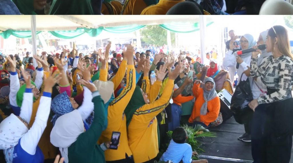Pada kesempatan ini Mak Rini mengundi hadiah dan berswafoto dengan peserta jalan sehat peringatan Hari Pendidikan Nasional Tahun 2024.