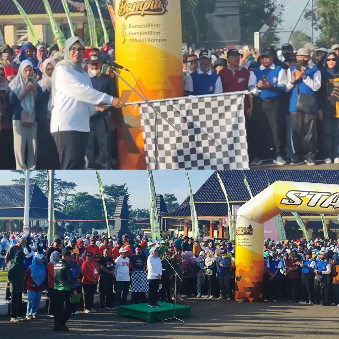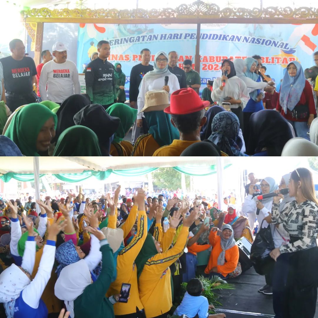 Bupati Blitar Hj. Rini Syarifah memberangkatkan peserta jalan sehat yang diikuti oleh ribuan guru di Kabupaten Blitar pada Jumat, 3 Mei 2024. Jalan sehat ini merupakan salah satu rangkaian acara peringatan Hari Pendidikan Nasional Tahun 2024 yang diselenggarakan oleh Dinas Pendidikan Kabupaten Blitar.