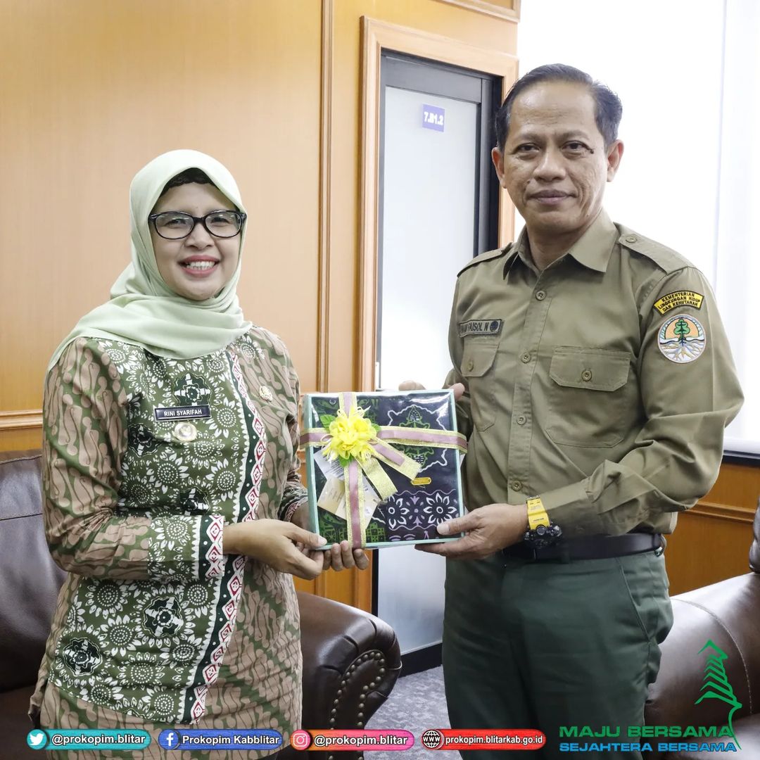 Bupati Blitar Hj. Rini Syarifah melaksanakan kunjungan kerja di Kementerian Lingkungan Hidup dan Kehutanan Republik Indonesia pada Senin, 6 Mei 2024. Pada kunjungannya Bupati Blitar yang biasanya dipanggil Mak Rini ini diterima langsung oleh Dirjen Planologi Kehutanan dan Tata Lingkungan (PKTL) Dr. Hanif Faisol Nurofiq, S.Hut., M.P.