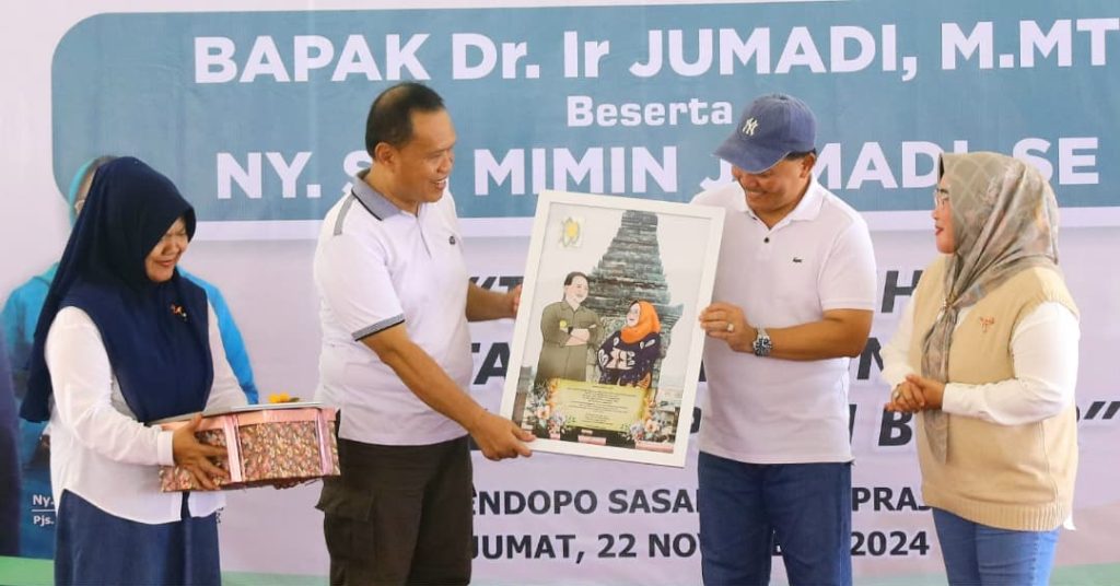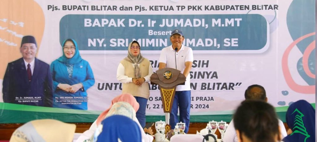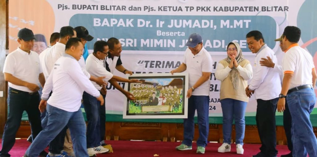 Pjs. Bupati Blitar Dr. Ir. Jumadi, M.MT., dan Pjs. TP PKK Kabupaten Blitar Ny. Sri Mimin Jumadi, SE., berpamitan kepada Forkopimda, OPD dan Camat di Lingkungan Pemerintahan Kabupaten Blitar. Kegiatan yang diawali dengan Apel bersama seluruh Karyawan Karyawati Pemerintah Kabupaten Blitar dan senam bersama ini berlangsung di Pendopo Sasana Adhi Praja Kantor Bupati Blitar. (Jumat 22 November 2024)