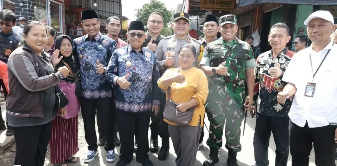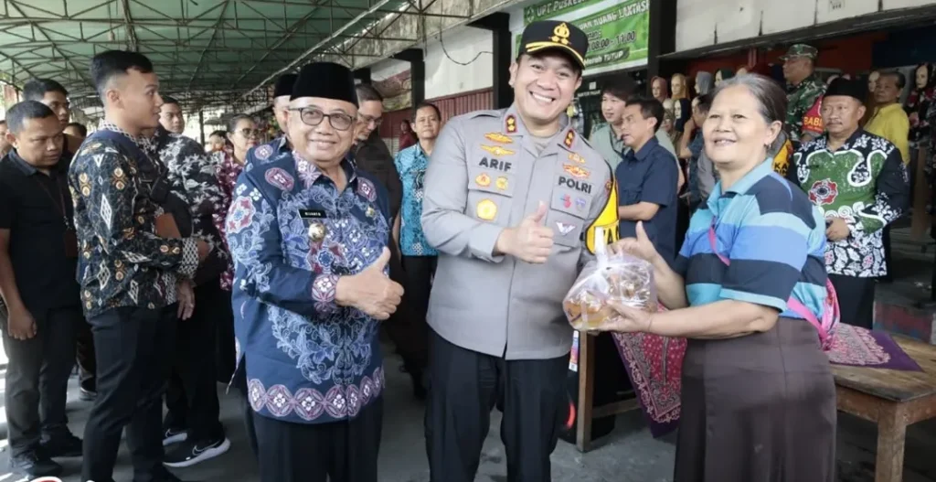 Bupati Blitar Drs. H. Rijanto, MM melaksanakan monitoring operasi pasar dan pemantauan harga sembako pada bulan ramadhan di Pasar Wlingi pada Kamis, 6 Maret 2025.