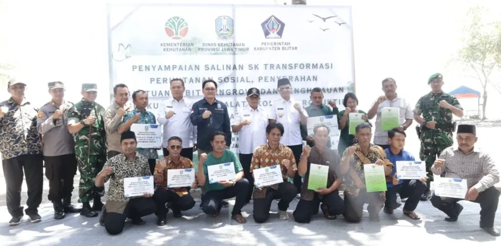 Kepala Dinas Kehutanan Jawa Timur Dr. Ir. Jumadi, M.MT menyampaikan kegiatan ini untuk penyampaian Salinan SK Transformasi Perhutanan Sosial, Penyerahan Bantuan Bibit Mangrove dan Penghijauan Lingkungan serta Alat Ekonomi Produktif (AEP) untuk Pemerintah Desa dan Kelompok Tani Hutan.