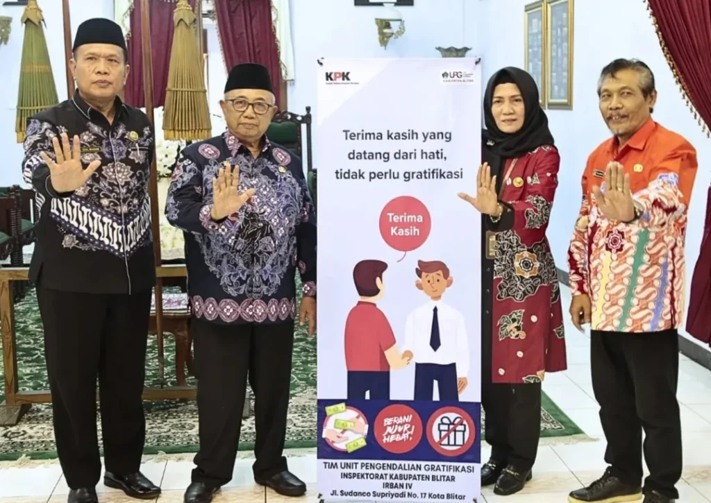 Bupati Blitar Drs. H. Rijanto, MM mengikuti Peluncuran Indeks Integritas Pendidikan 2024 dan Penandatanganan Komitmen Bersama Penyelenggaraan Pendidikan Antikorupsi secara daring di Pendopo Ronggo Hadinegoro pada Kamis, 24 April 2025.