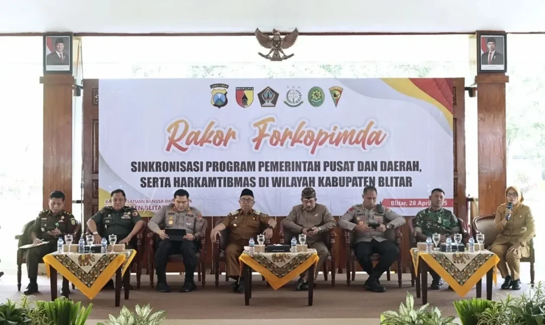 Bupati Blitar Drs. H. Rijanto, MM memimpin Rapat Koordinasi Forkopimda pada Senin, 28 April 2025 bertempat di Pendopo Sasana Adhi Praja. Rapat koordinasi ini diikuti oleh Forkopimda Blitar, Kepala Perangkat Daerah, Camat, Kapolsek, Danramil, Kepala Desa, Lurah, Babinsa dan Bhabinkamtibmas se – Kabupaten Blitar.