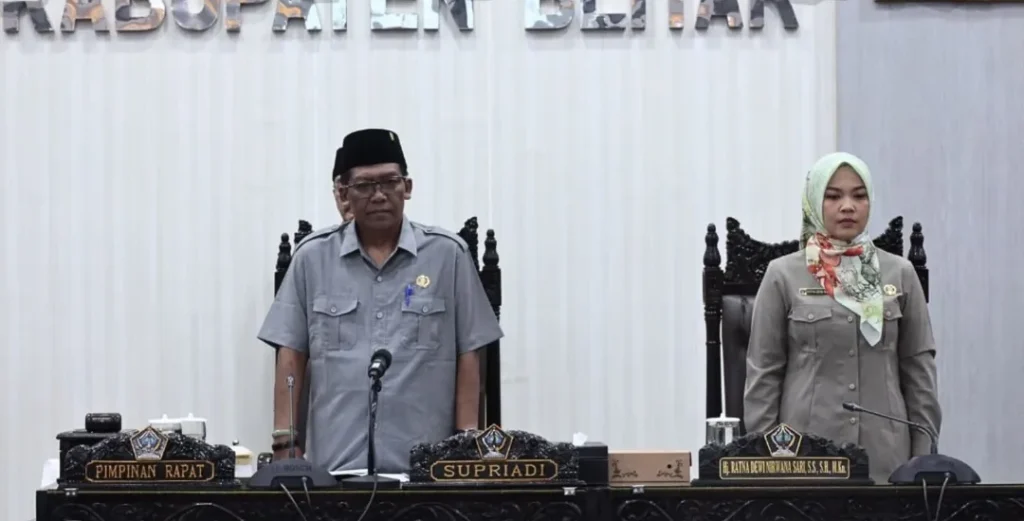 Bupati Blitar, Drs. H. Rijanto, MM, bersama Wakil Bupati Blitar H. Beky Herdihansah, menghadiri Rapat Paripurna DPRD Kabupaten Blitar yang digelar di Graha Paripurna DPRD Kabupaten Blitar, Senin (26/5). Rapat ini mengusung agenda utama penyampaian penjelasan Bupati atas Rancangan Peraturan Daerah (Ranperda) tentang Rencana Pembangunan Jangka Menengah Daerah (RPJMD) Kabupaten Blitar Tahun 2025–2029.