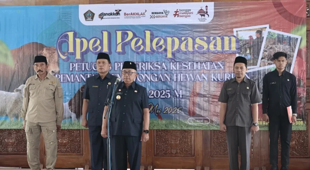Menjelang Hari Raya Idul Adha 1446 Hijriah / 2025 Masehi yang jatuh pada tanggal 6 Juni 2025, Bupati Blitar, Drs. H. Rijanto, MM, secara resmi melepas 261 petugas pemeriksa kesehatan dan pemantau pemotongan hewan kurban dalam sebuah apel yang dilaksanakan di Pendopo Sasana Adi Praja, Rabu (28/5).