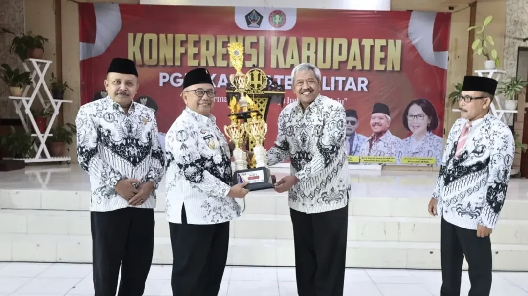 Bupati Blitar Drs. H. Rijanto, MM secara resmi membuka Konferensi Kabupaten PGRI Kabupaten Blitar yang digelar di Aula Dinas Pendidikan Kabupaten Blitar pada Sabtu (5/7/2025). Konferensi yang mengusung tema “Transformasi PGRI Menuju Indonesia Maju” ini menjadi momentum strategis untuk memperkuat peran PGRI dalam memajukan pendidikan dan menyiapkan generasi emas menyongsong Indonesia 2045.